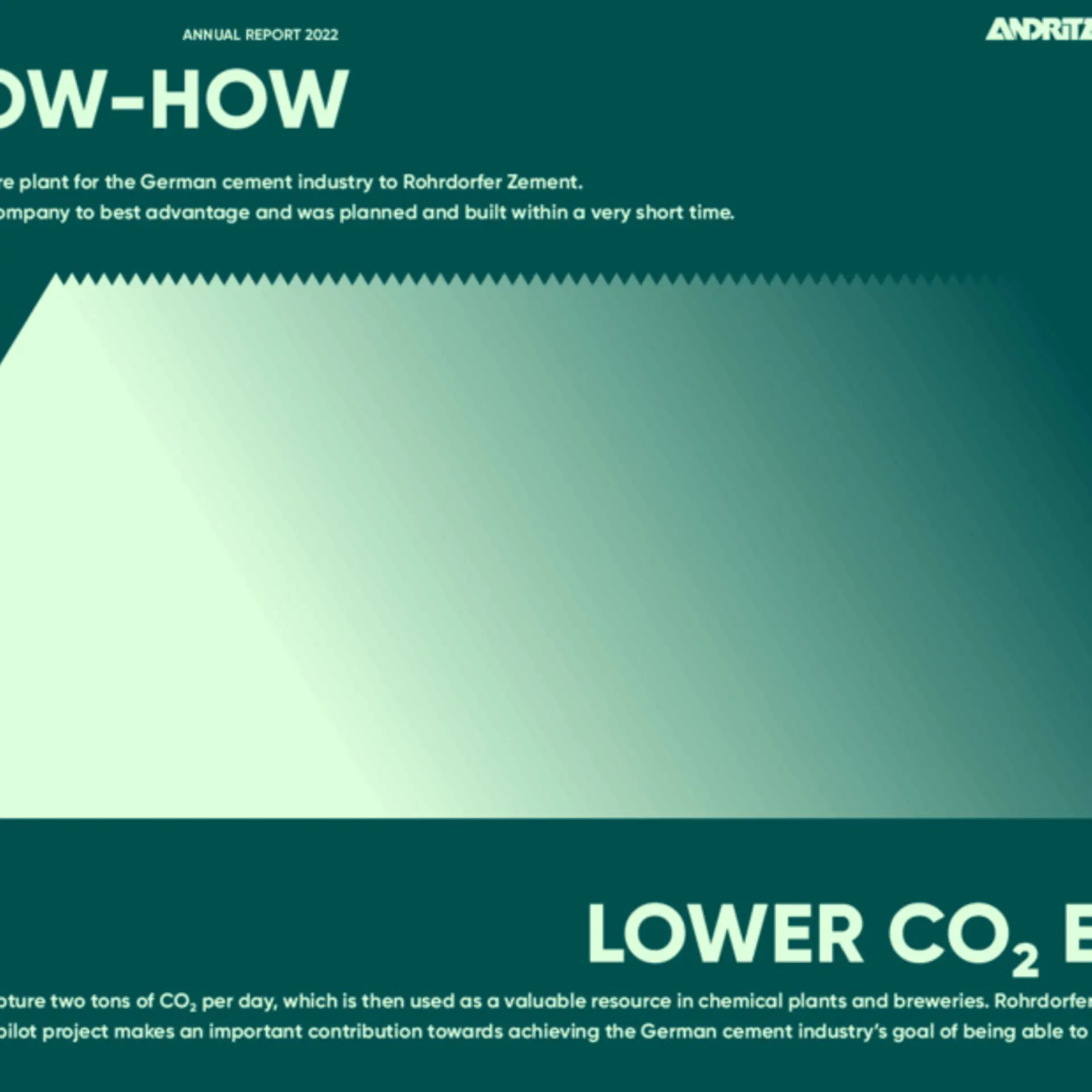 ANDRITZ has delivered the first CO₂ capture plant for the German cement industry to Rohrdorfer Zement. It has been adapted to the needs of the company to best advantage and was planned and built within a very short time.