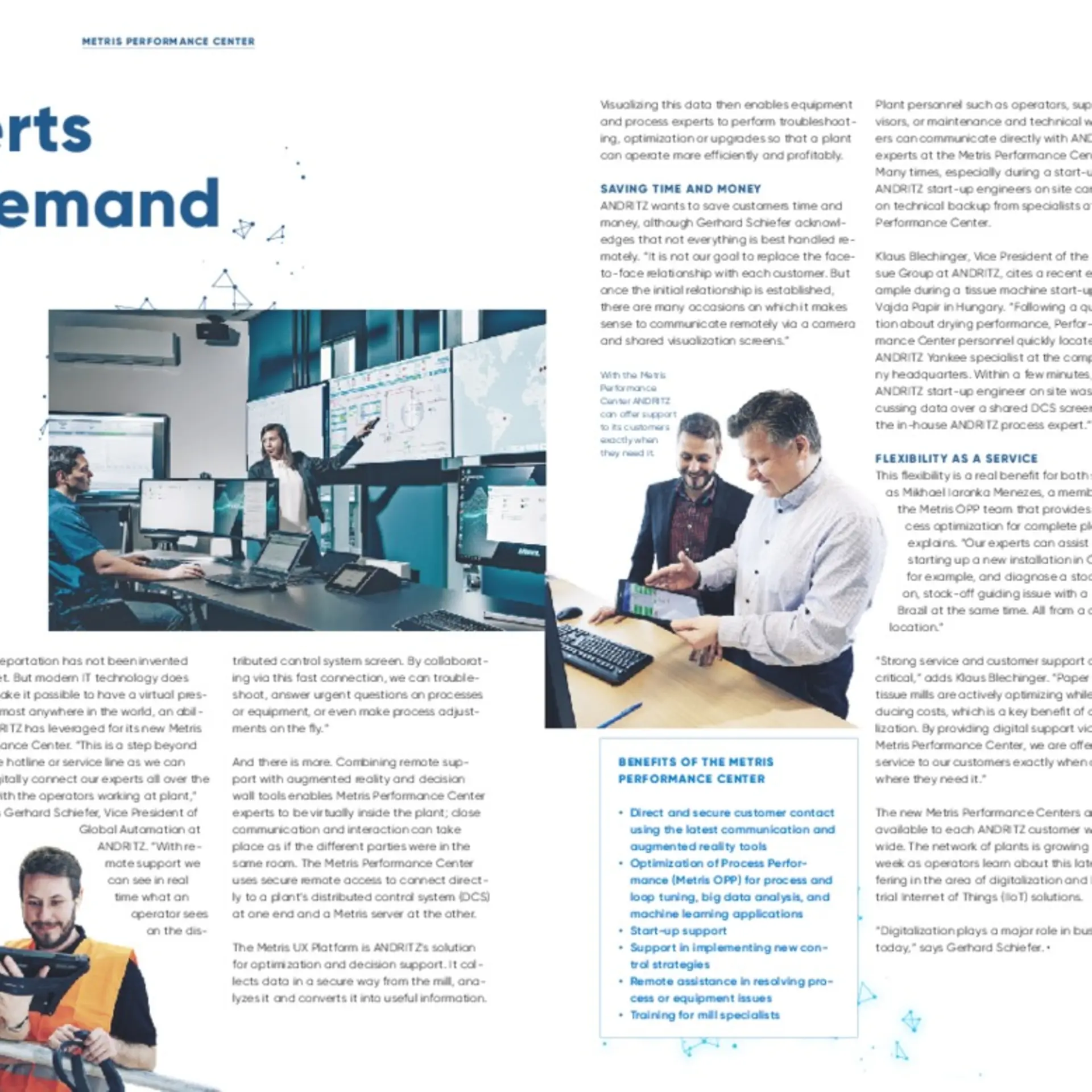 With the Metris Performance Center ANDRITZ can offer support to its customers exactly when they need it.