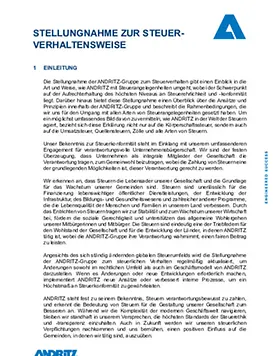 Die Stellungnahme der ANDRITZ-GRUPPE zum Steuerverhalten gibt einen Einblick in die Art und Weise, wie ANDRITZ mit Steuerangelegenheiten umgeht, wobei der Schwerpunkt auf der Aufrechterhaltung des höchsten Niveaus an Steuerehrlichkeit und -konformität liegt. Darüber hinaus bietet diese Stellungnahme einen Überblick über die Ansätze und Prinzipien innerhalb der ANDRITZ-GRUPPE und beschreibt die Rahmenbedingungen, die