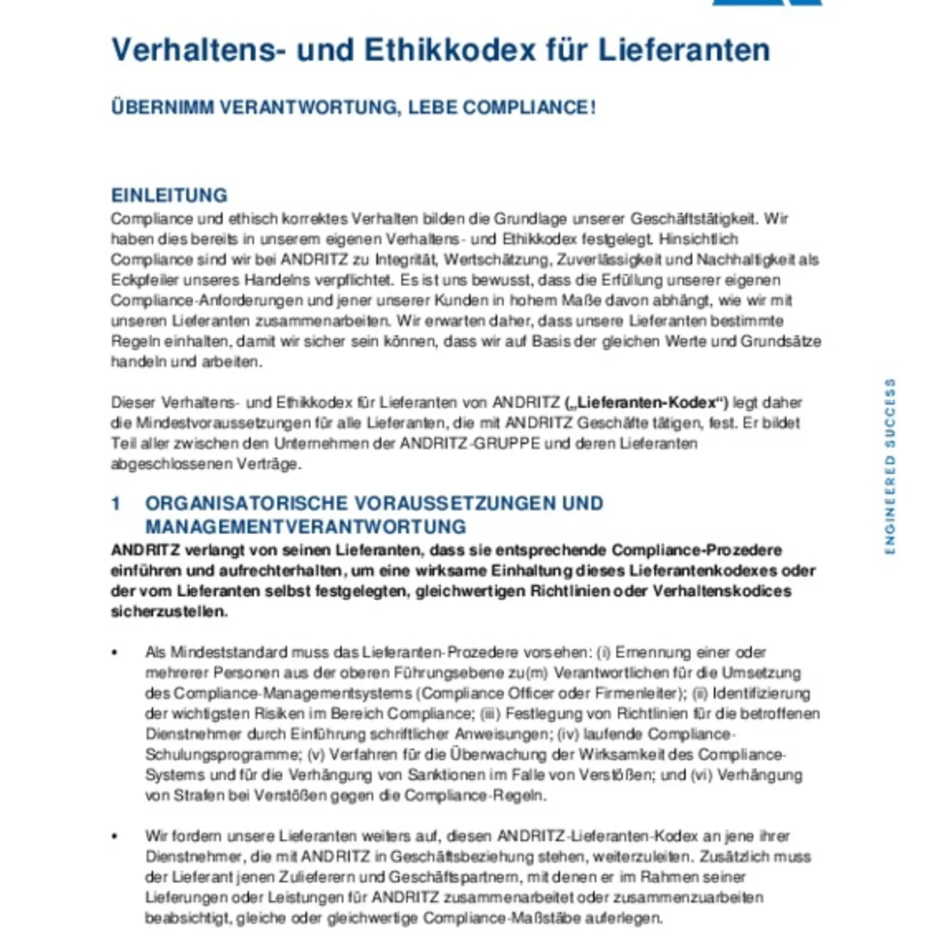 ANDRITZ ist stets um die Verbesserung der Produkt- und Leistungsqualität durch Innovation und technisches Know-how bemüht. Bei der Beschaffung von Materialien für unsere Endprodukte werden hohe Maßstäbe, basierend auf systematischer Planung gemäß den Marktanforderungen, gesetzt.