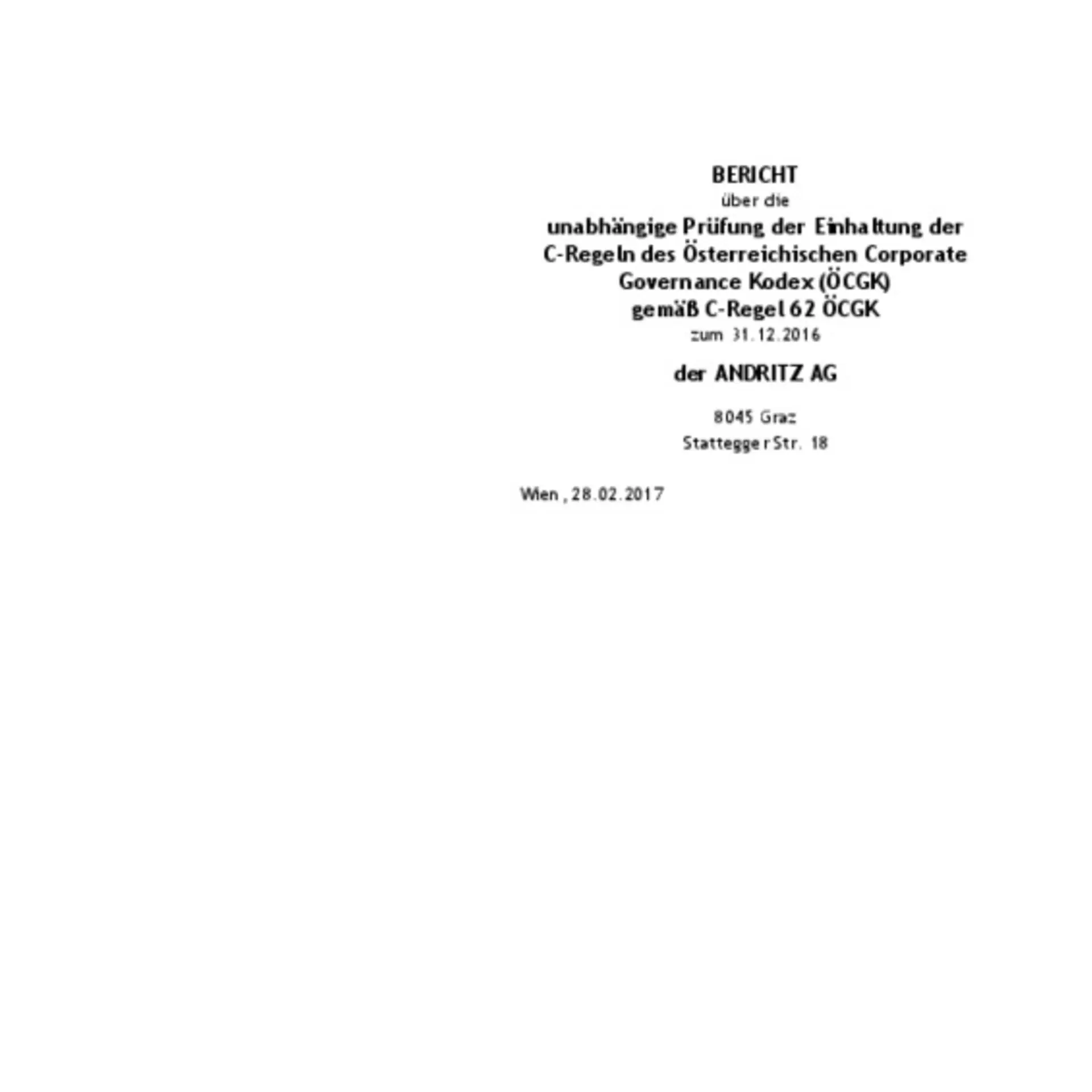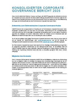 Der Österreichische Corporate-Governance-Kodex basiert auf freiwilliger Selbstverpflichtung und geht über die gesetzlichen Anforderungen an eine Aktiengesellschaft hinaus. ANDRITZ befolgt die Regeln des Kodex lückenlos.