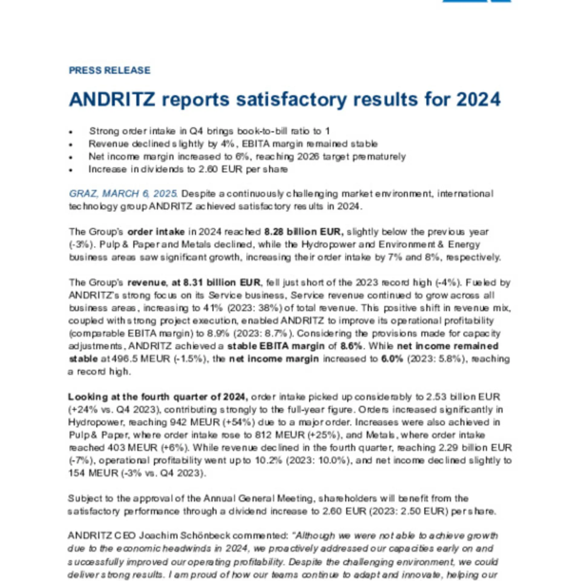 Thank you for your trust in ANDRITZ. Together, let’s make 2025 a year defined by resilience, innovation, and growth that matters.