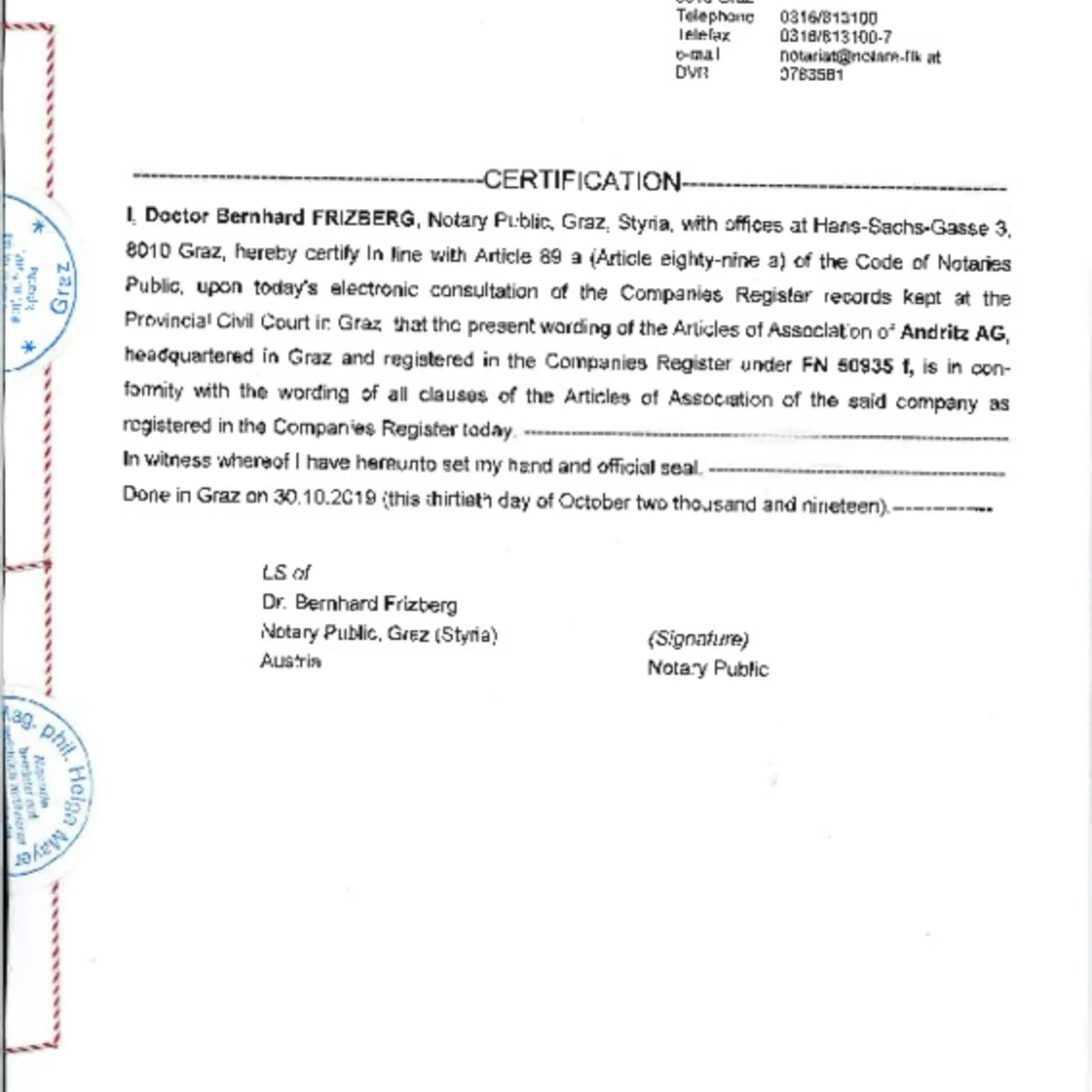 The Executive Board and the Supervisory Board as well as all employees of the ANDRITZ Group have committed themselves to complying with the Code.