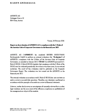The Austrian Corporate Governance Code (January 2025 version) valid for fiscal year 2024 is available and publicly available on the website of the ANDRITZ Group and on the website of the Working Group on Corporate Governance in Austria under corporate-governance.at.