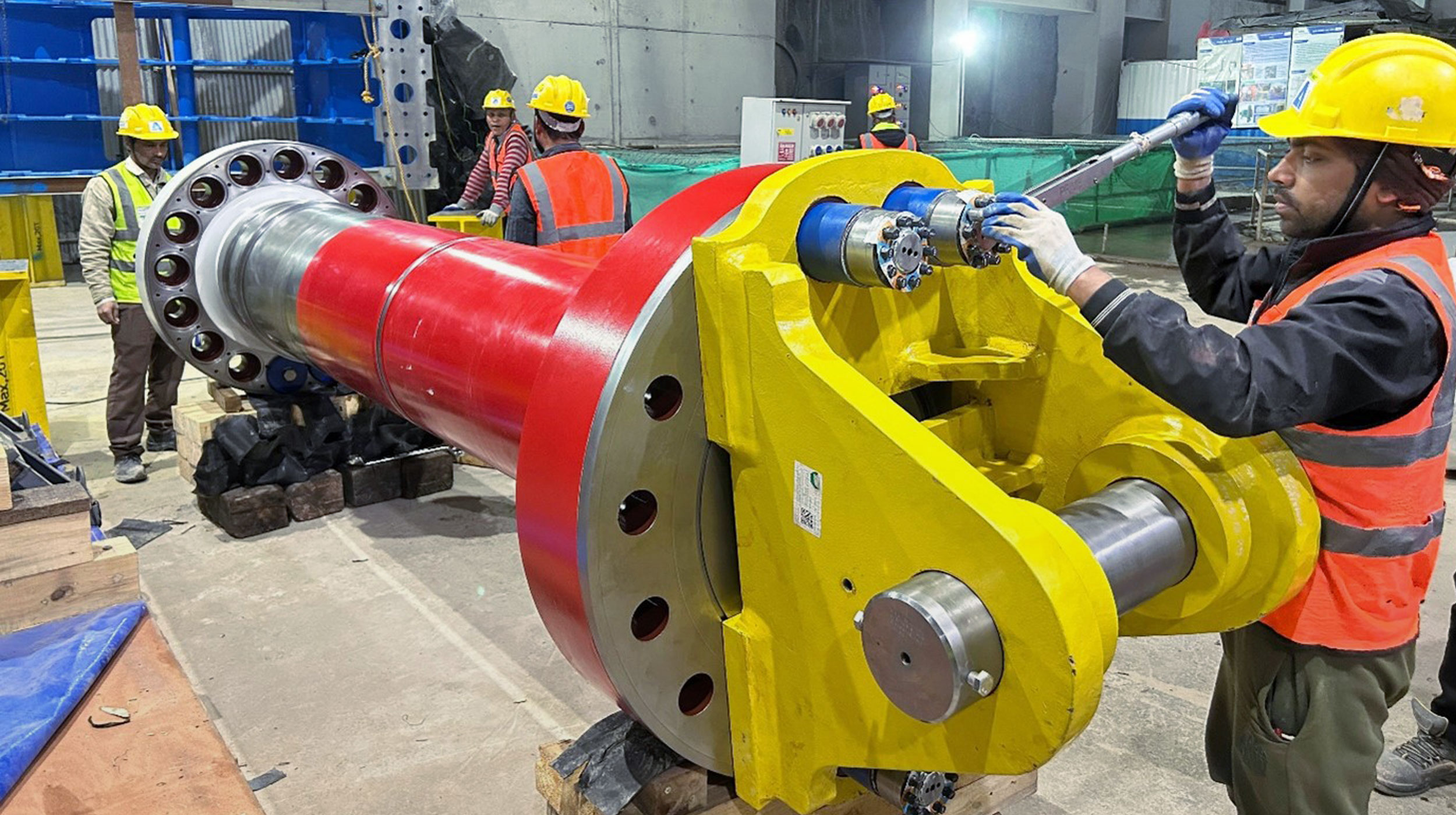 Faced with the challenge of limited space at the service bay for undertaking the turbine shaft and runner assembly, the team adeptly reimagined their execution methodology to accelerate project timelines. The coupling of the runner and shaft was therefore carried out on the MIV floor, enabling seamless workflow continuity and facilitating swift progress in the installation works.