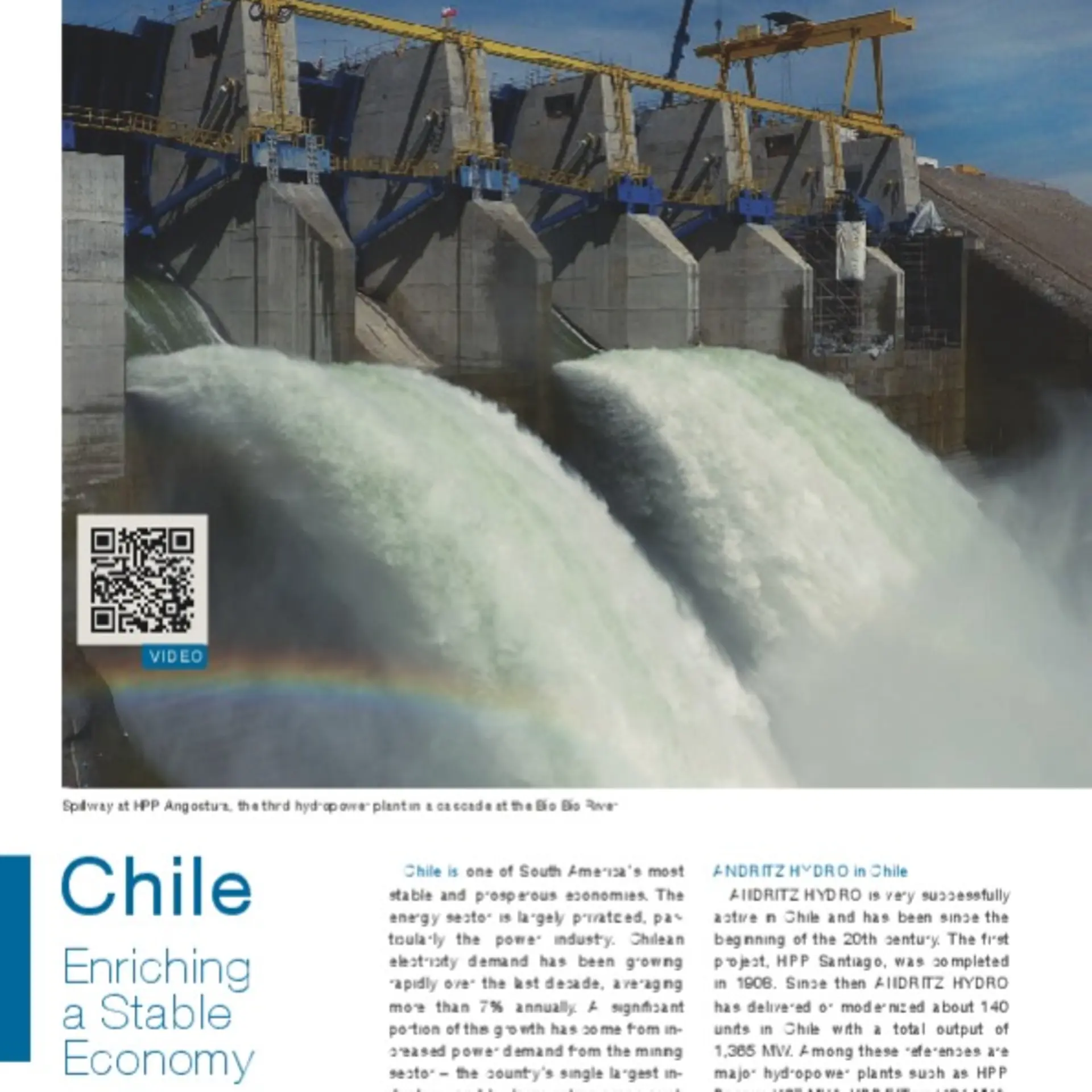 In more recent years, ANDRITZ completed the Sigchos project of 18 MW (with three Pelton units), the 50 MW Due I project (with two Francis units) and Due II with a third unit of 15 MW. In addition, ANDRITZ installed electromechanical equipment in the emblematic 1,500 MW Coca Codo Sinclair plant (eight Pelton units). In 2022, this plant managed to generate 6,828 GWh, representing around 25% of the total electricity produced in the country. Furthermore, being located on the Pacific slope of Ecuador, it became a very important energy contributor during the last months of 2023 as it helped to overcome the low runoff on the Amazon slope as a result of the ‘El Nino’ phenomenon that is currently affecting the countries of the region.