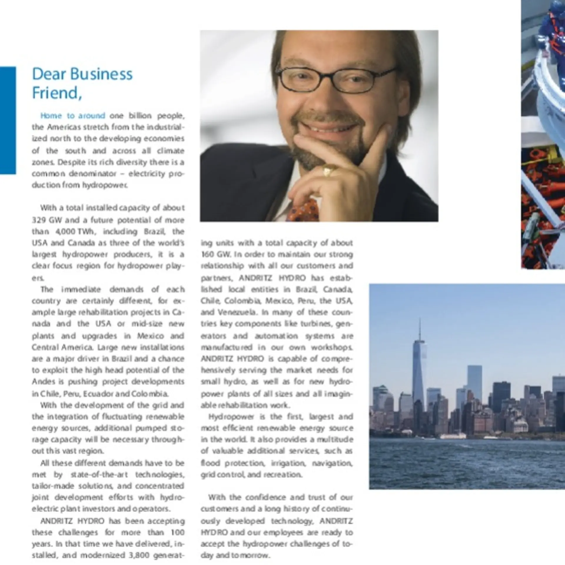 ANDRITZ is proud to be a key partner on this journey of transformation. With our unwavering commitment to innovation and excellence, we are driving the development of hydropower infrastructure across North, Central, and South America. In this special edition of our Customer Magazine, we shine a spotlight on the indispensable role that hydropower and innovative energy solutions, such as synchronous condensers, play in shaping the future energy landscape of the Americas.