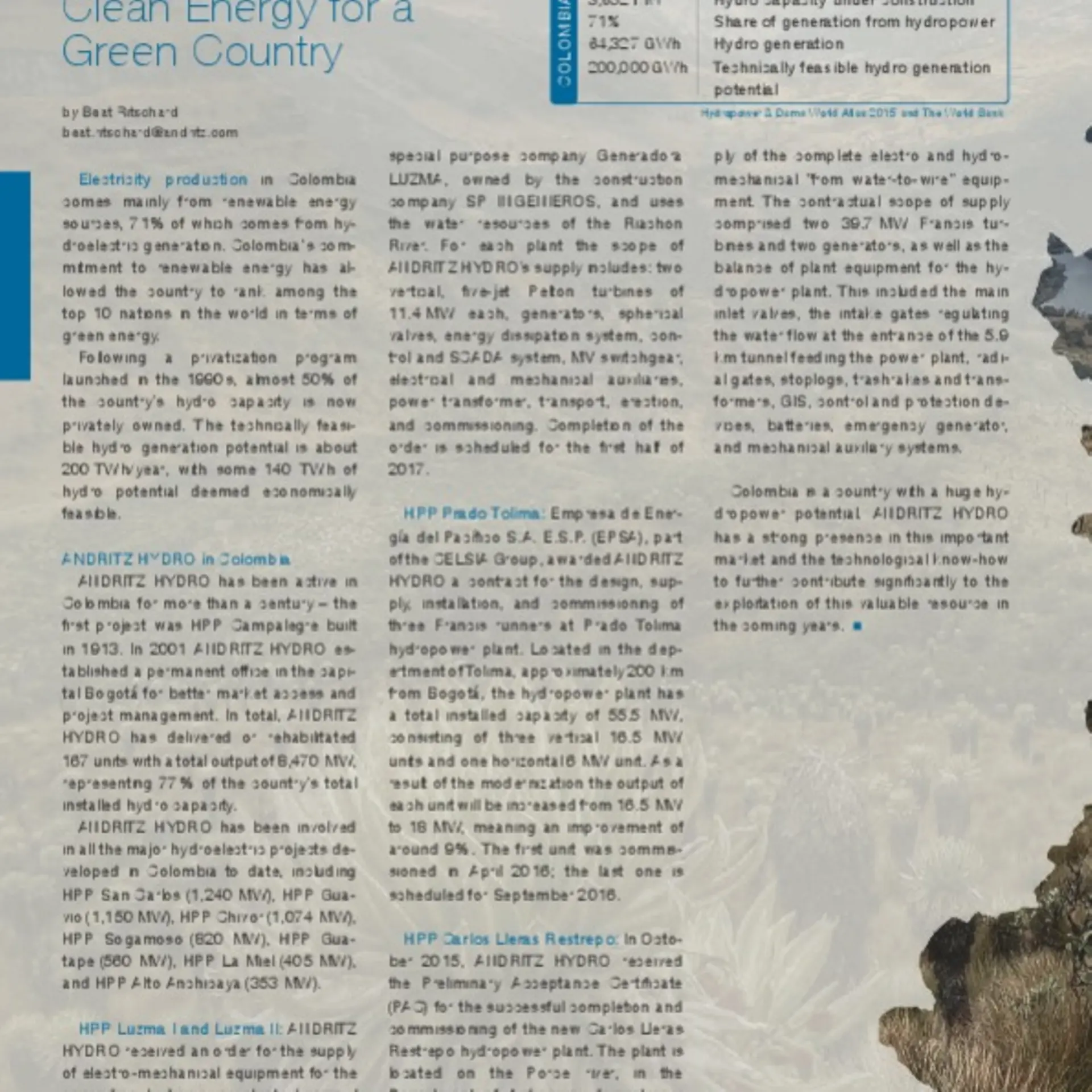 In May 2023, ANDRITZ was entrusted with a follow-up contract for the same hydropower plant for the supply of electromechanical equipment including two Francis-type units of 15 MW each, inlet valves, electric generators, control equipment, speed governors, excitation, protection, and assembly services. The new equipment promises to take Santa María to new levels of capacity and efficiency in renewable energy generation allowing the control of the flow of the Baluarte River and bringing us closer to the two main objectives of this multipurpose project: the irrigation of 24,250 hectares of agricultural land and the supply of drinking water to almost 430,000 inhabitants of the surrounding communities.