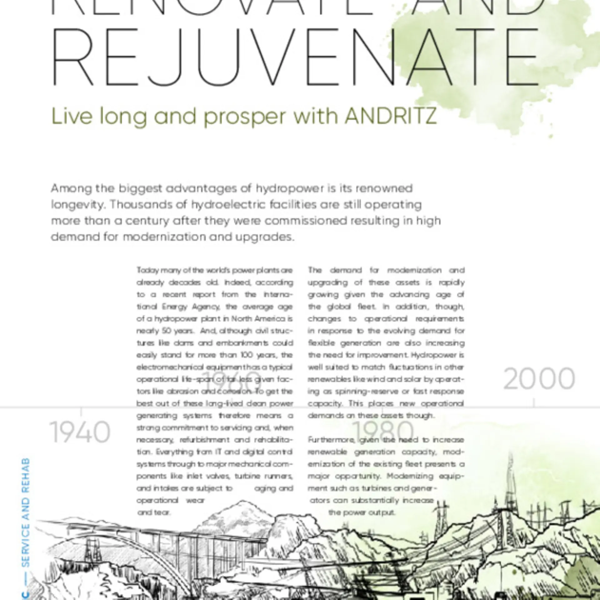 Among the biggest advantages of hydropower is its renowned longevity. Thousands of hydroelectric facilities are still operating more than a century after they were commissioned resulting in high demand for modernization and upgrades.