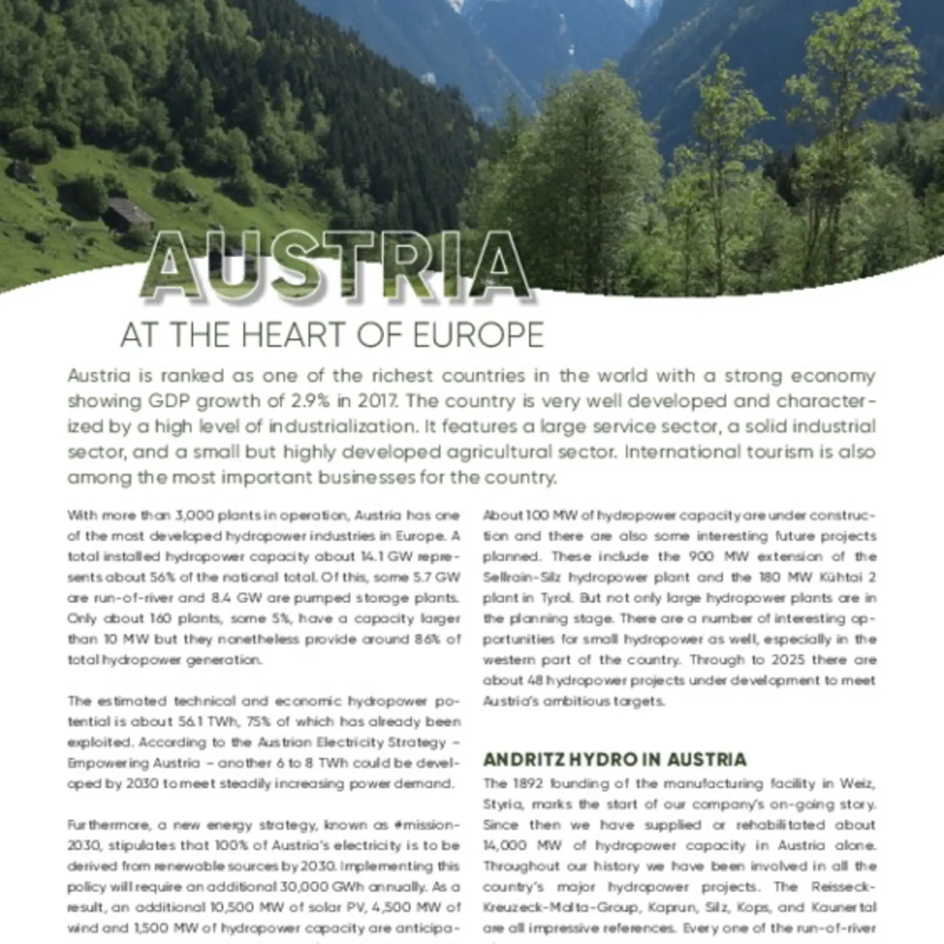 The estimated technical and economic hydropower potential is about 56.1 TWh, 75% of which has already been exploited. According to the Austrian Electricity Strategy – Empowering Austria – another 6 to 8 TWh could be developed by 2030 to meet steadily increasing power demand.