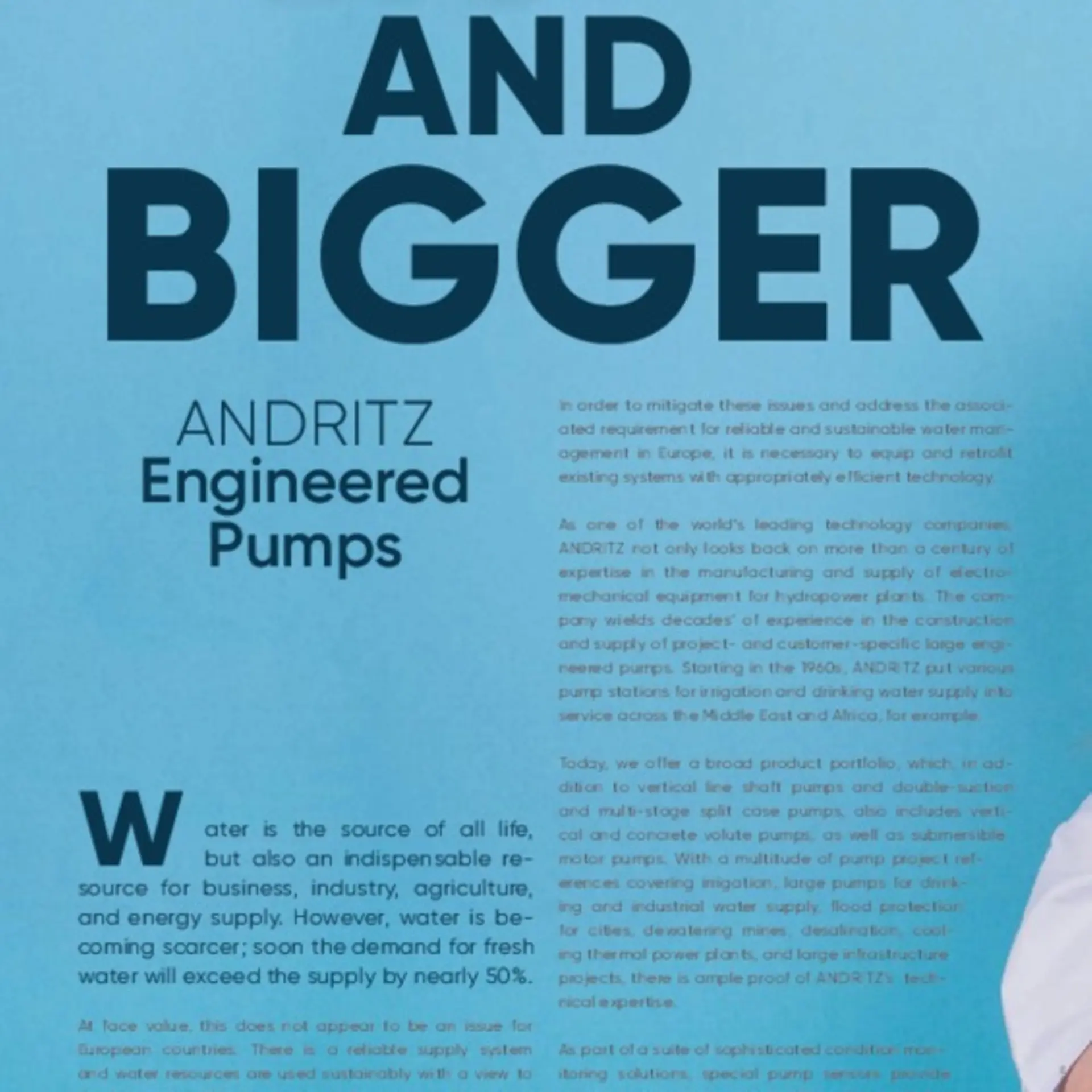 As one of the world’s leading technology companies, ANDRITZ not only looks back on more than a century of expertise in the manufacturing and supply of electro-mechanical equipment for hydropower plants. The company wields decades’ of experience in the construction and supply of project- and customer-specific large engineered pumps. Starting in the 1960s, ANDRITZ put various pump stations for irrigation and drinking water supply into service across the Middle East and Africa, for example.