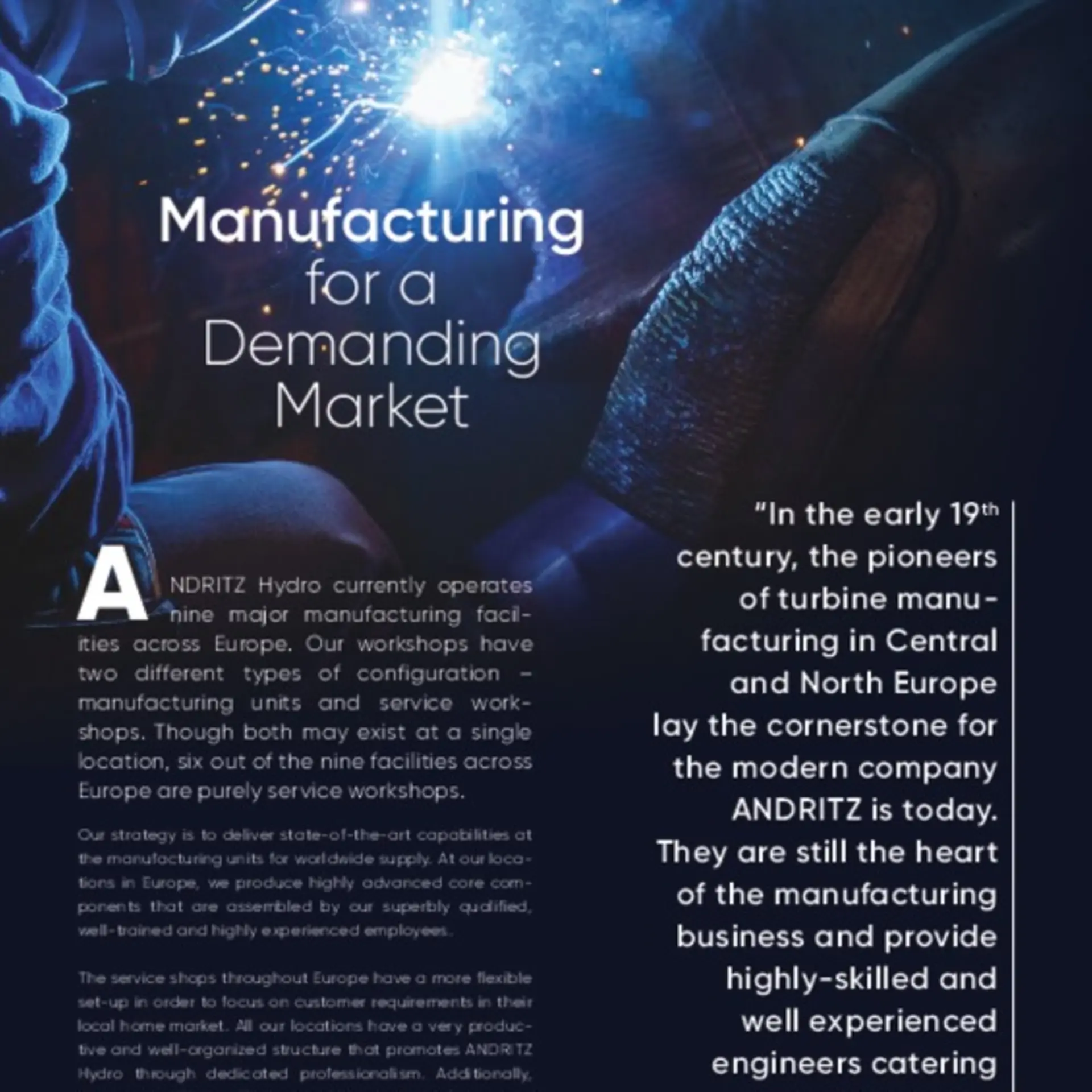 ANDRITZ Hydro currently operates nine major manufacturing facilities across Europe.