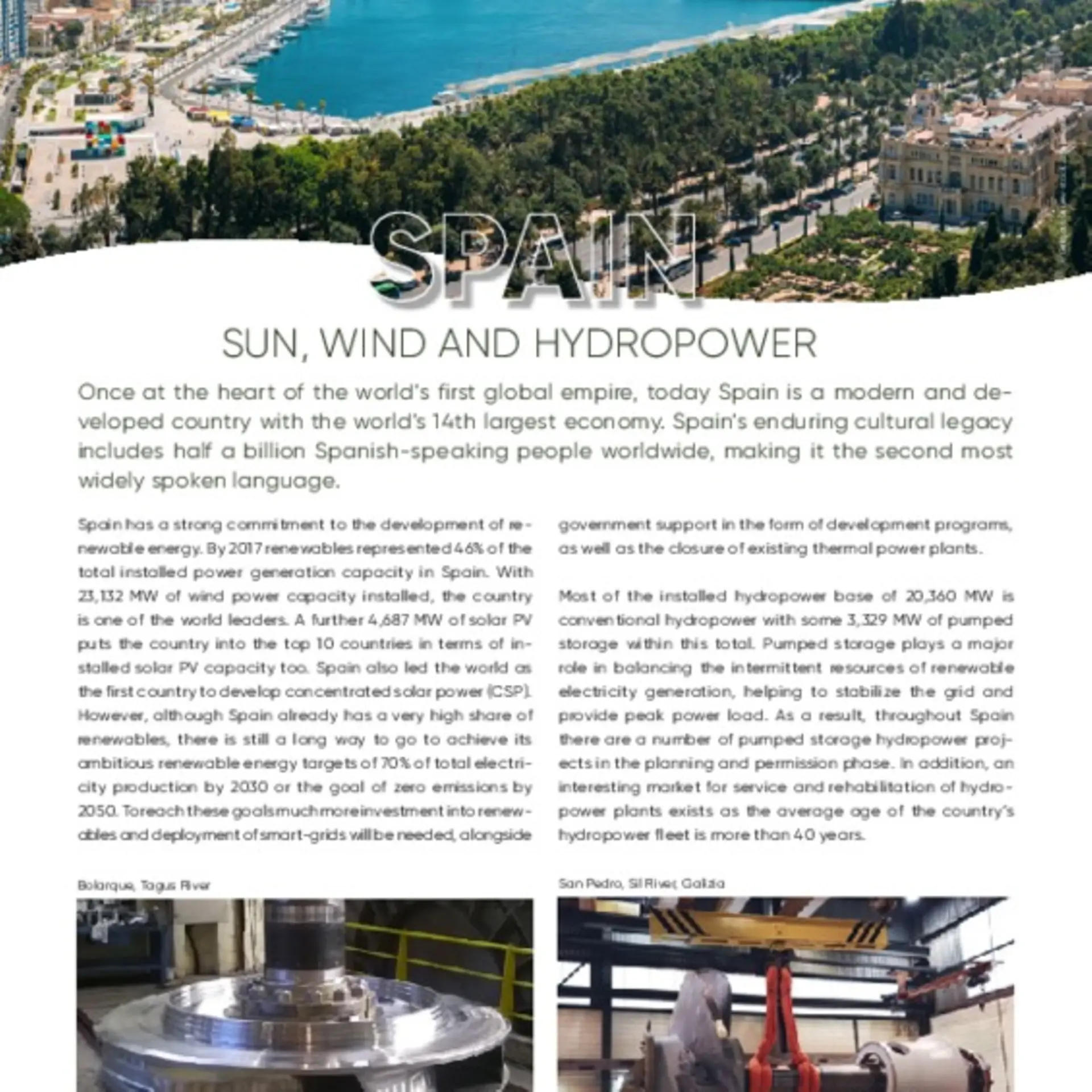 ANDRITZ Hydro has contributed to the development of hydropower in Spain since its beginnings at the end of the 19th century. The company has played an active role in Spain ever since and some 60 years ago established a Spanish company and workshops in Algete/Madrid. This organization provides customized solutions and products not only to the Spanish market and neighboring Portugal, but also to numerous projects in Central and South American markets.
