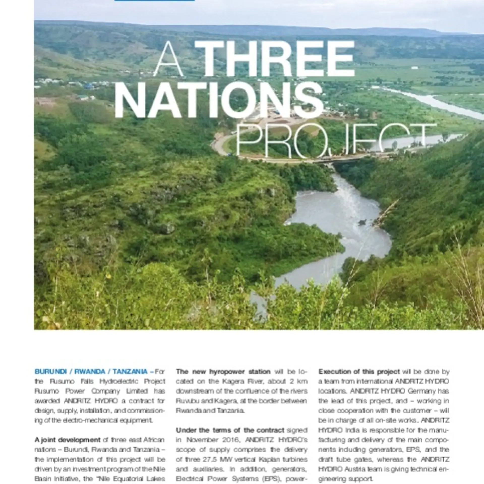 For the Rusumo Falls Hydroelectric Project Rusumo Power Company Limited has awarded ANDRITZ HYDRO a contract for design, supply, installation, and commissioning of the electro-mechanical equipment.