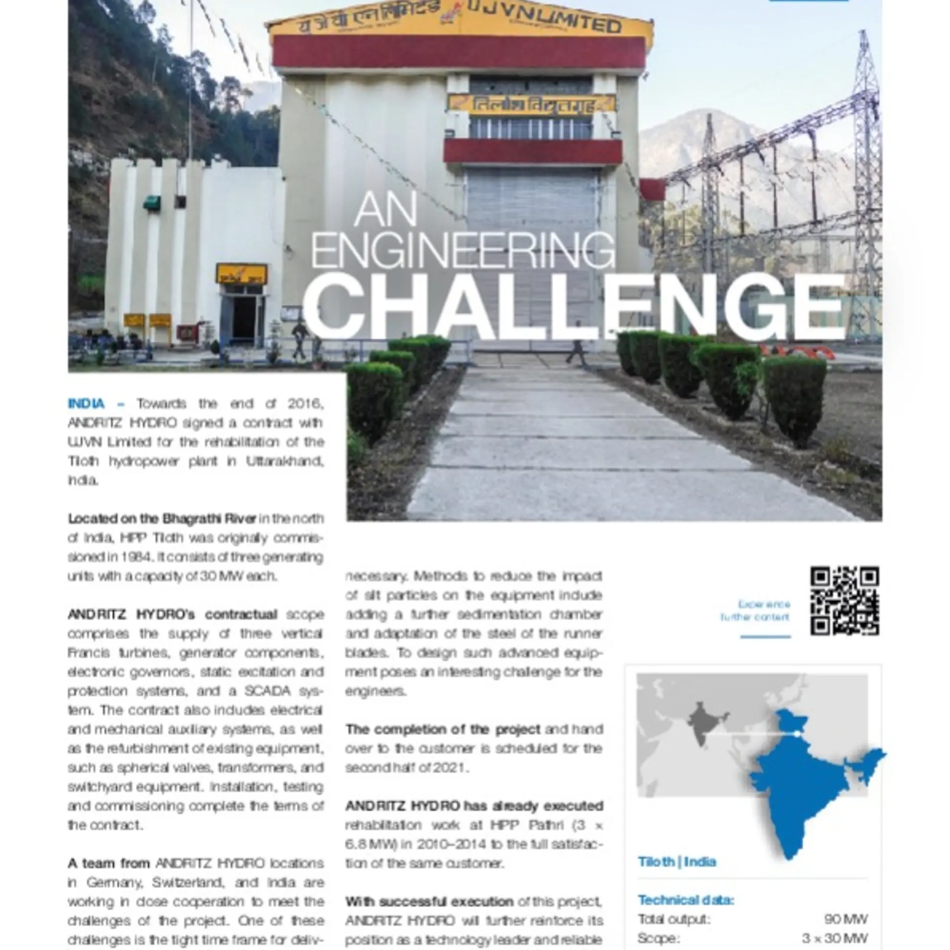 ANDRITZ HYDRO has already executed rehabilitation work at HPP Pathri (3 × 6.8 MW) in 2010–2014 to the full satisfaction of the same customer.