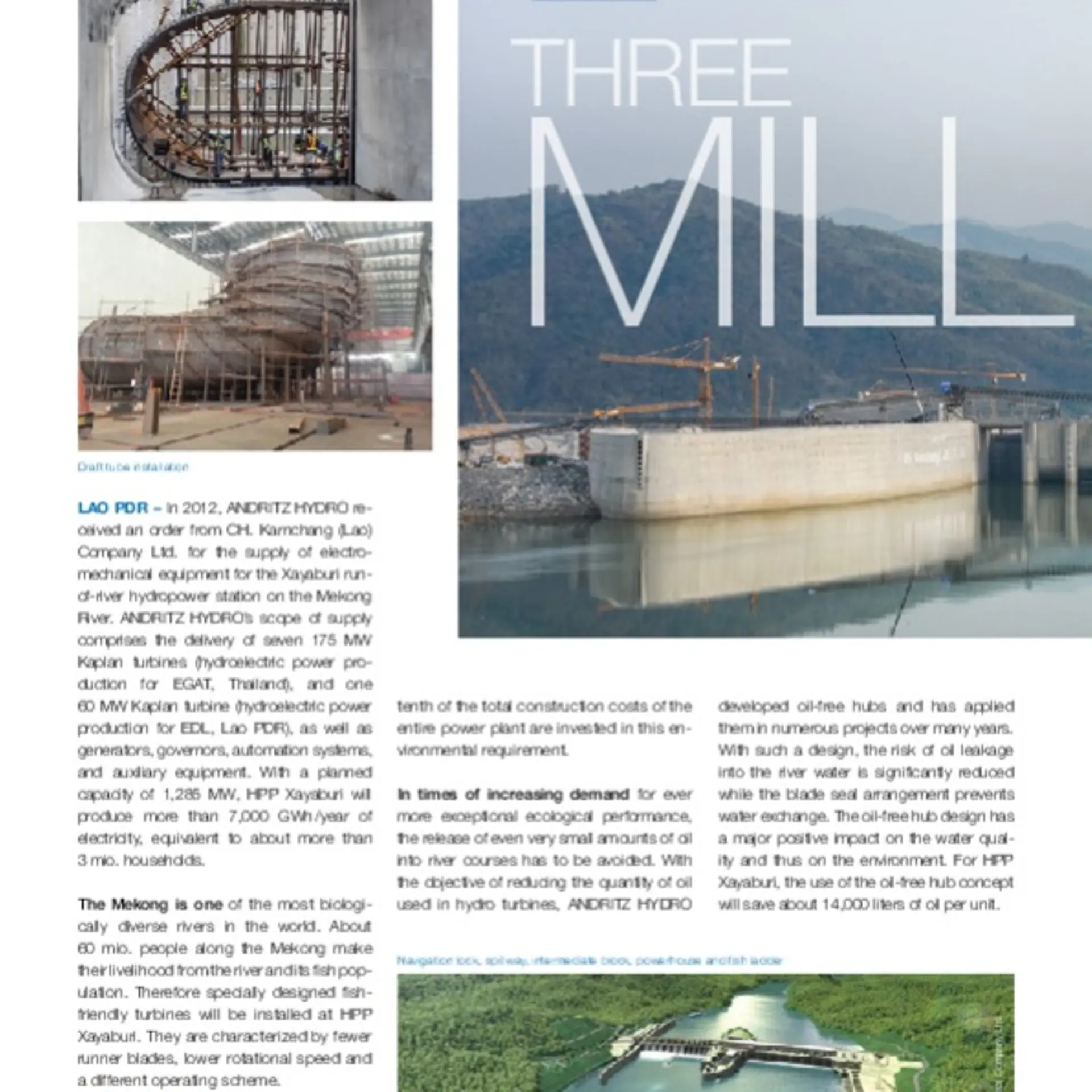 In 2012, ANDRITZ HYDRO received an order from CH. Karnchang (Lao) Company Ltd. for the supply of electro-mechanical equipment for the Xayaburi run-of-river hydropower station on the Mekong River.