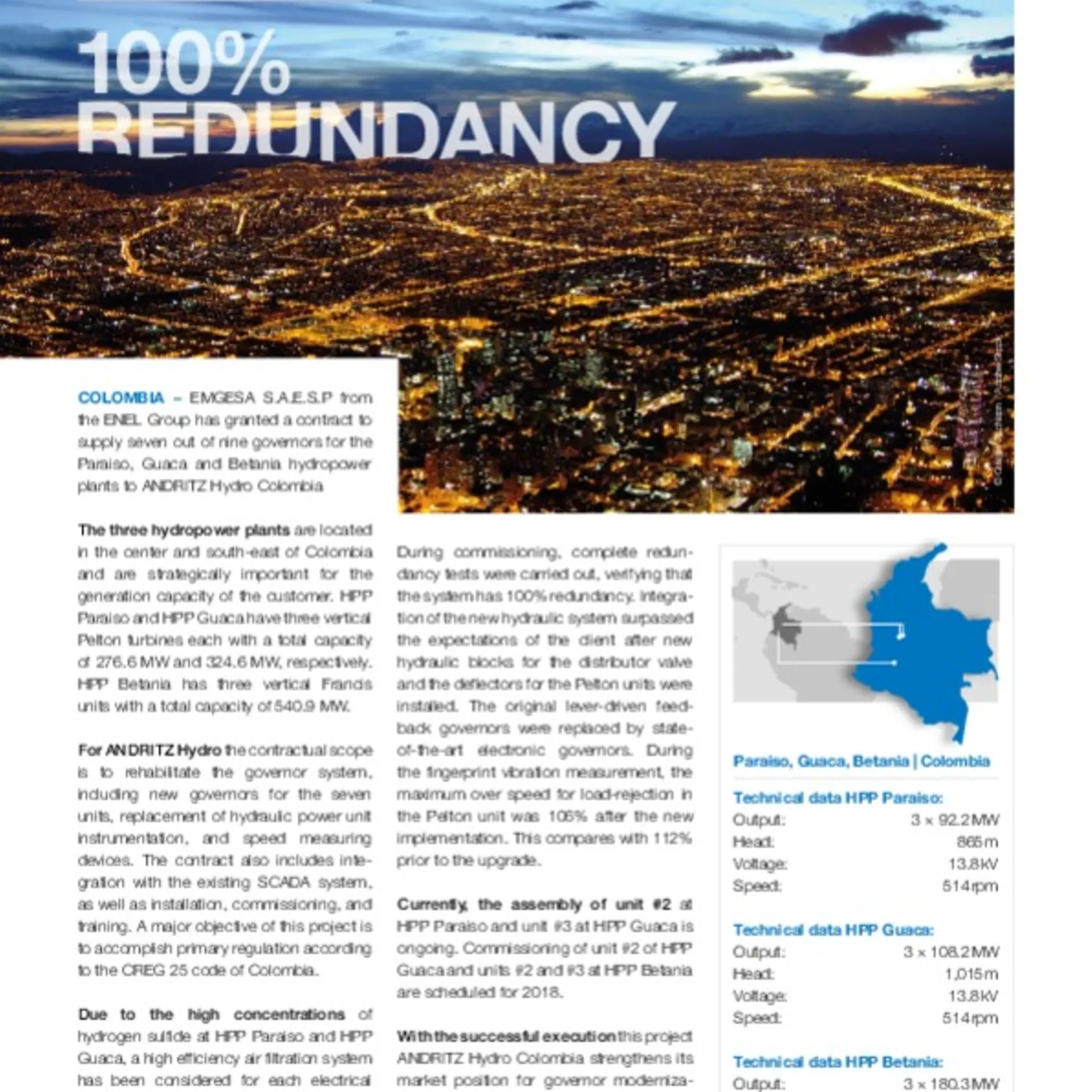 With the successful execution this project ANDRITZ Hydro Colombia strengthens its market position for governor modernization in Colombia.