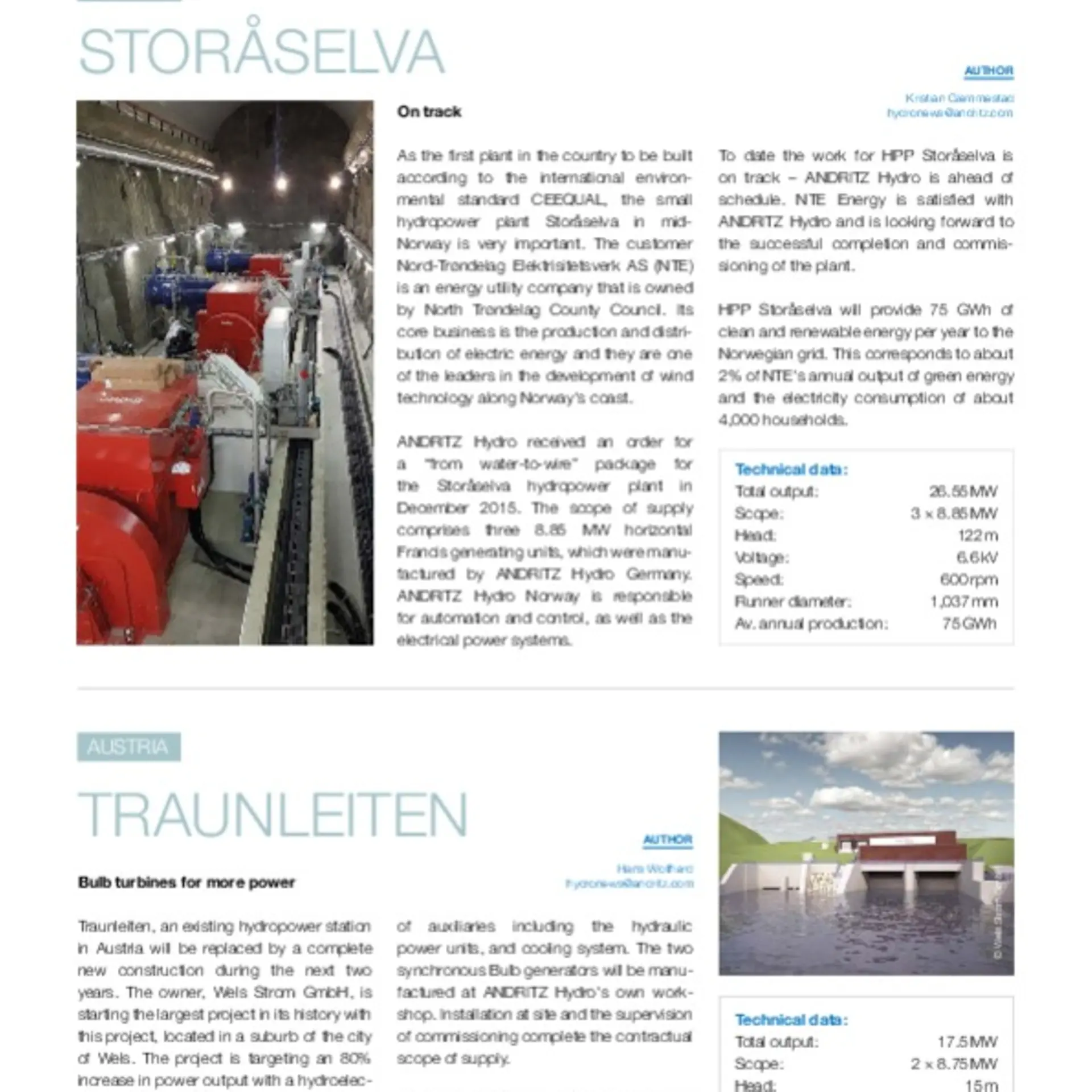After completion in November 2019, the order for HPP Traunleiten will be another important reference for ANDRITZ Hydro in Austria.