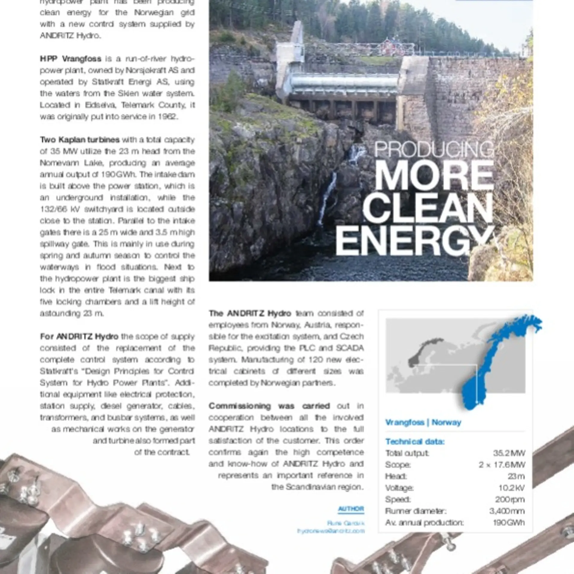 Since 2017 the Vrangfoss hydropower plant has been producing clean energy for the Norwegian grid with a new control system supplied by ANDRITZ Hydro.