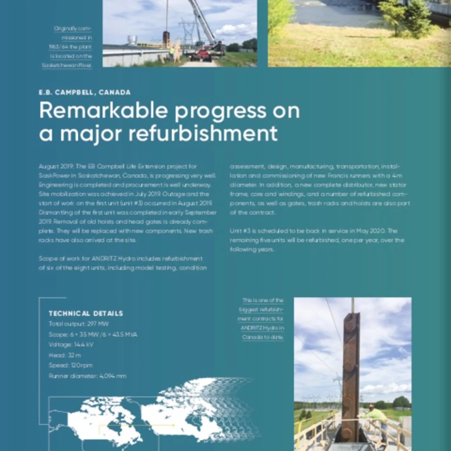 August 2019: The EB Campbell Life Extension project for SaskPower in Saskatchewan, Canada, is progressing very well.