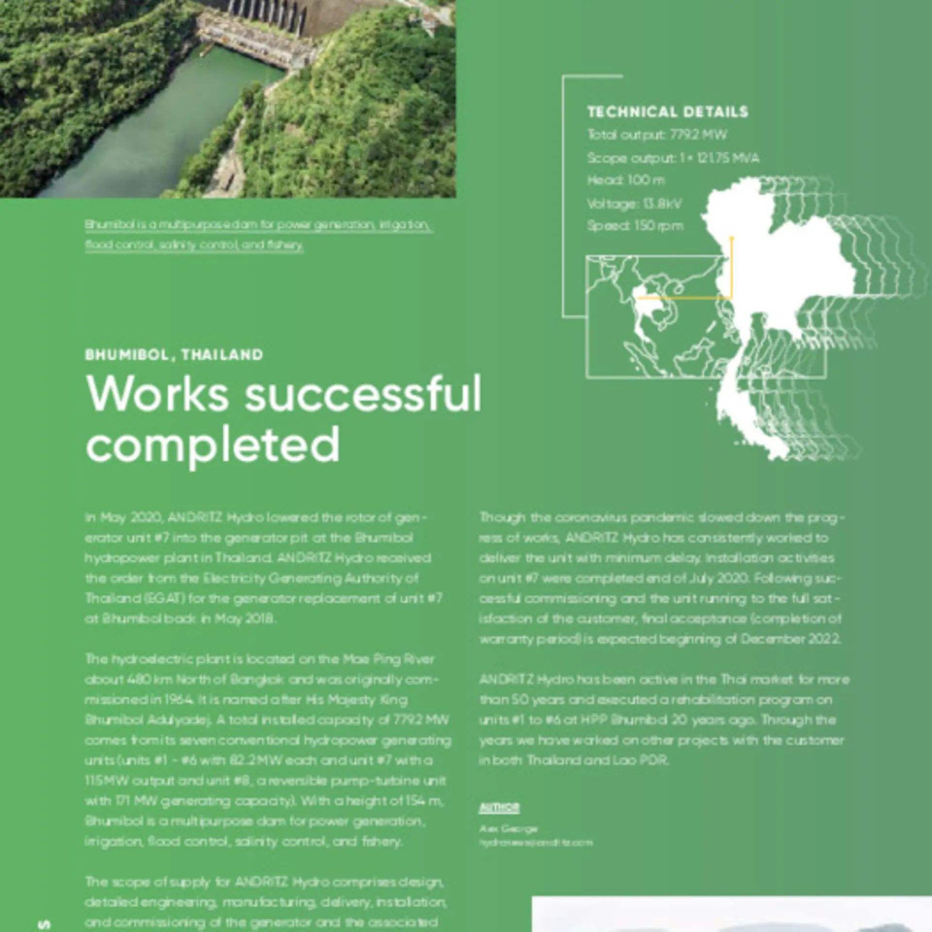 ANDRITZ Hydro received the order from the Electricity Generating Authority of Thailand (EGAT) for the generator replacement of unit #7 at Bhumibol back in May 2018.