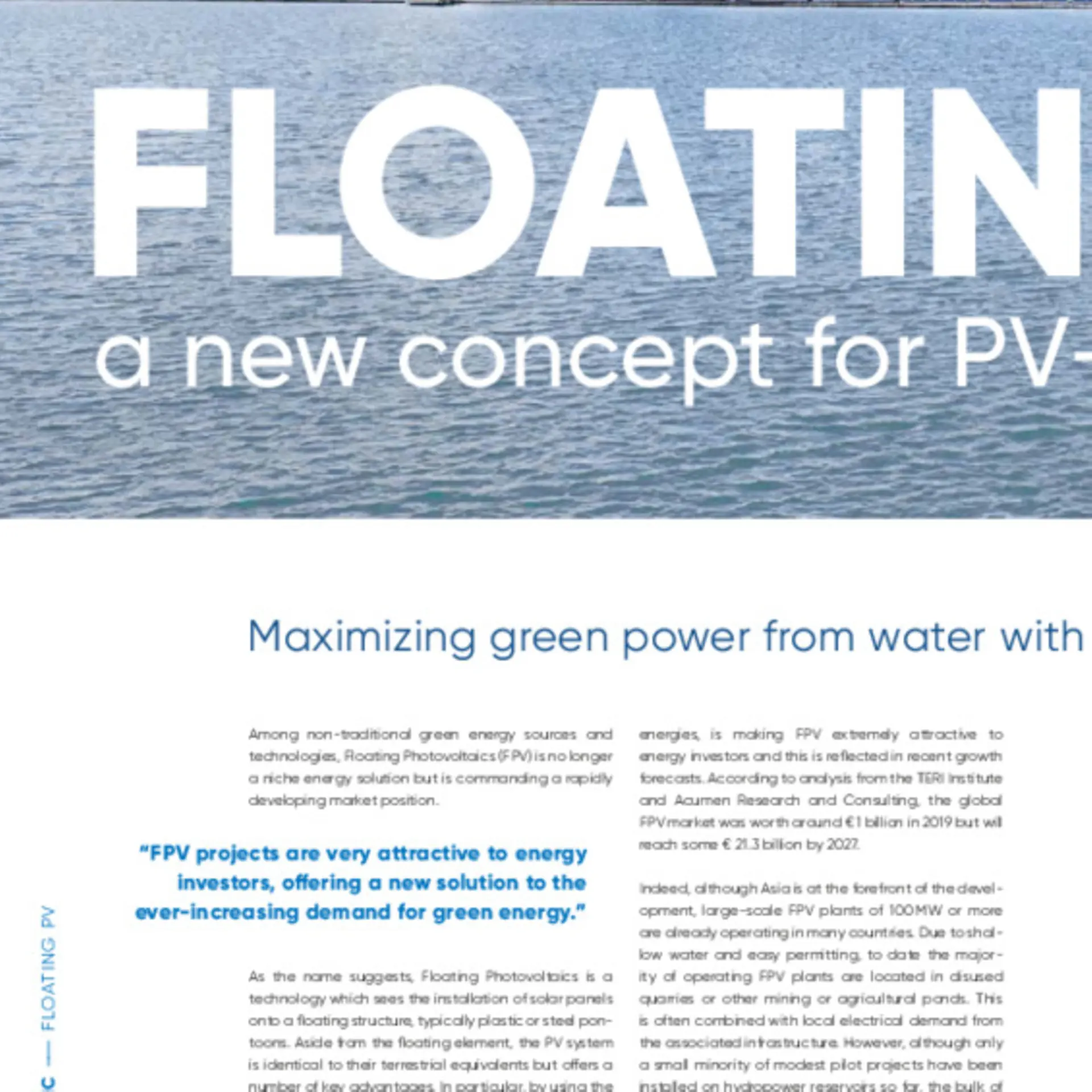 Among non-traditional green energy sources and technologies, Floating Photovoltaics (FPV) is no longer a niche energy solution but is commanding a rapidly developing market position.