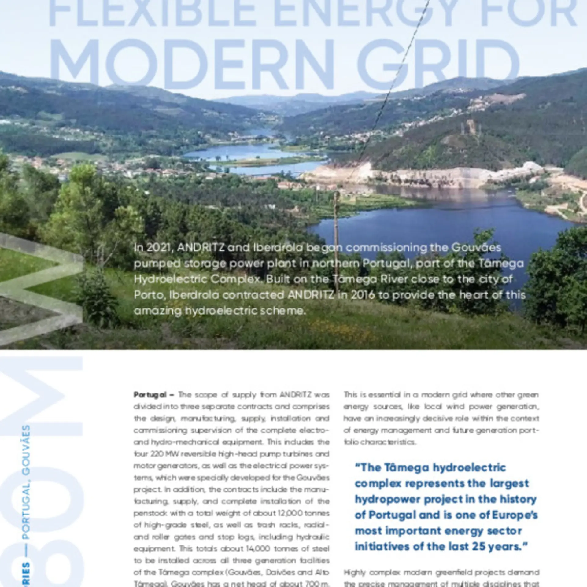 In 2021, ANDRITZ and Iberdrola began commissioning the Gouvães pumped storage power plant in northern Portugal, part of the Tâmega Hydroelectric Complex. Built on the Tâmega River close to the city of Porto, Iberdrola contracted ANDRITZ in 2016 to provide the heart of this amazing hydroelectric scheme.