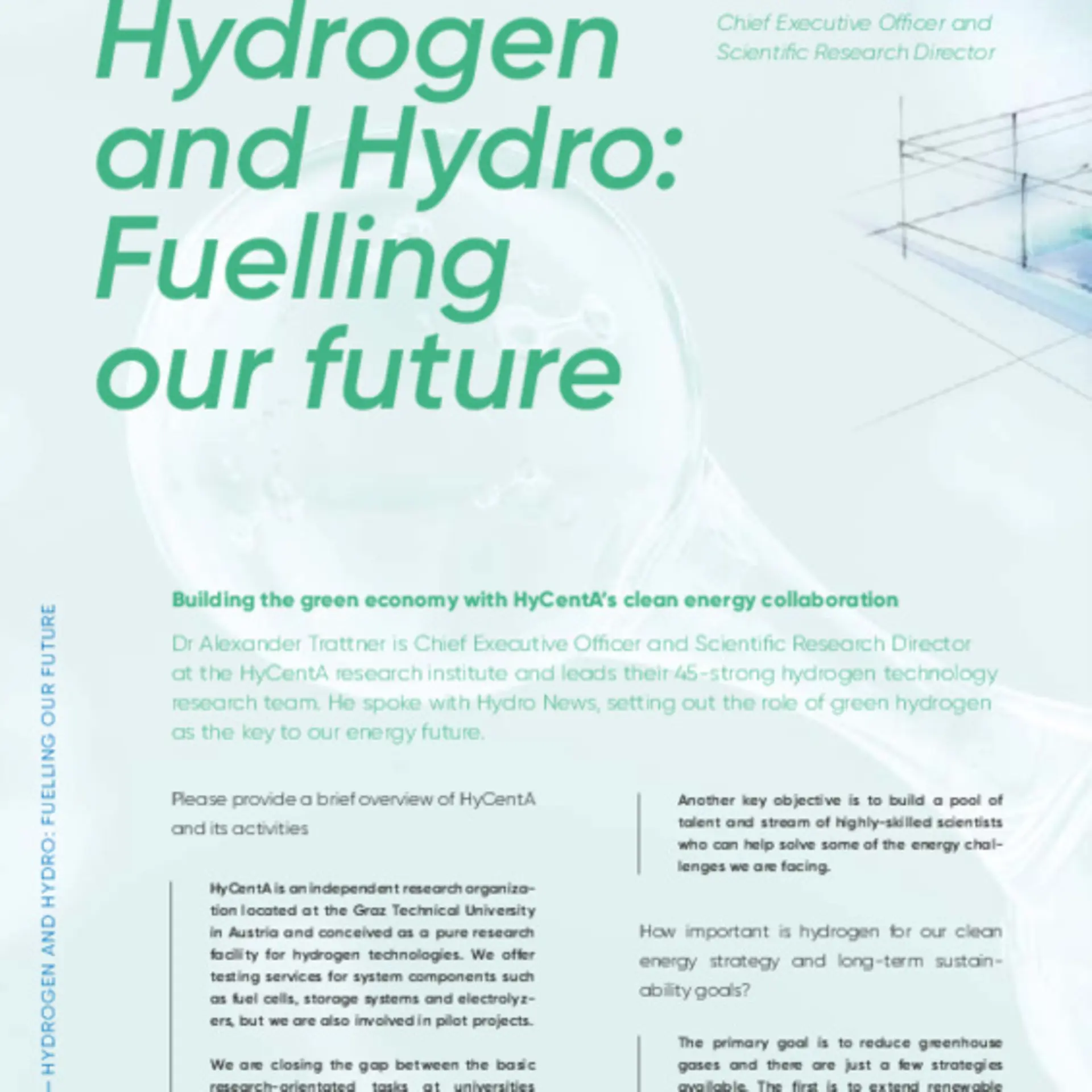 Dr Alexander Trattner is Chief Executive Officer and Scientific Research Director at the HyCentA research institute and leads their 45-strong hydrogen technology research team. He spoke with Hydro News, setting out the role of green hydrogen as the key to our energy future.