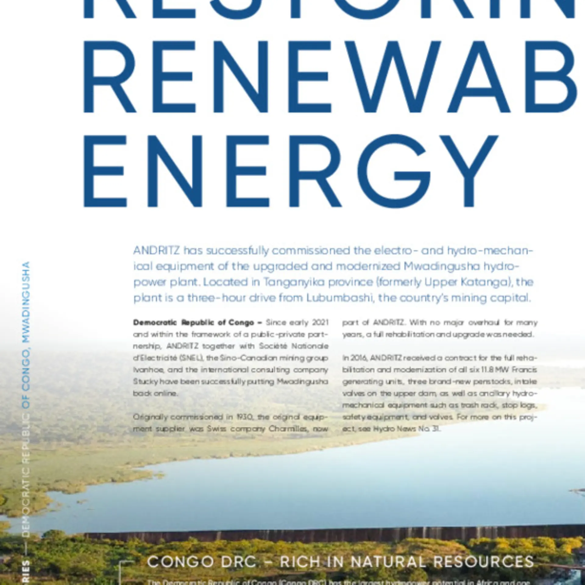 In parallel with rehabilitation of other parts of the Mwadingusha complex such as roads, access bridges, and civil works by Stucky, SNEL, and Ivanhoe, in December 2017, ANDRITZ was awarded a further contract for hydro-mechanical works. This contract covers the supply of three new butterfly valves, a manifold of the penstock, trash racks, motorization of the spillway, as well as replacement of the intake valves, safety valves, and stop logs.