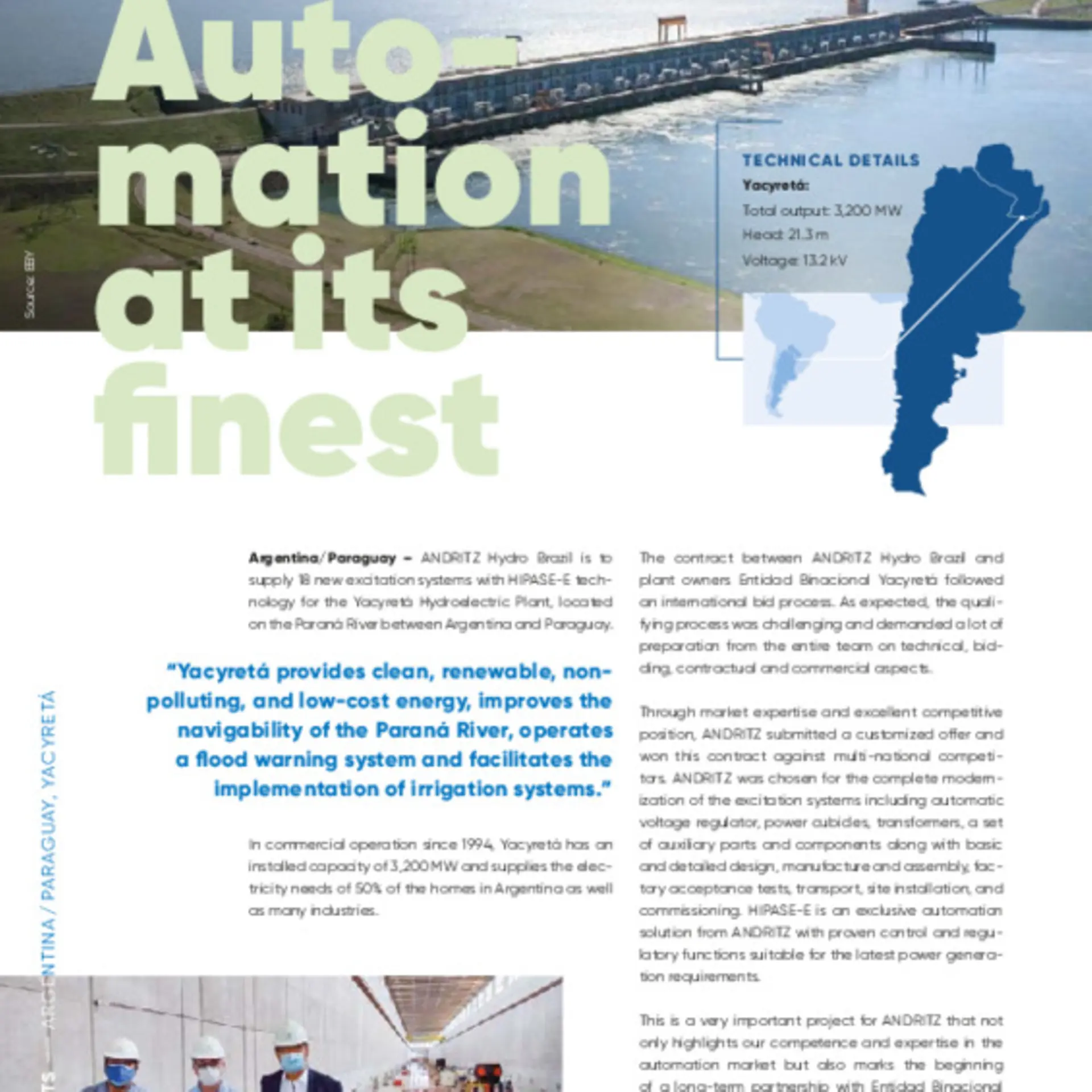 This is a very important project for ANDRITZ that not only highlights our competence and expertise in the automation market but also marks the beginning of a long-term partnership with Entidad Binacional Yacyretá.