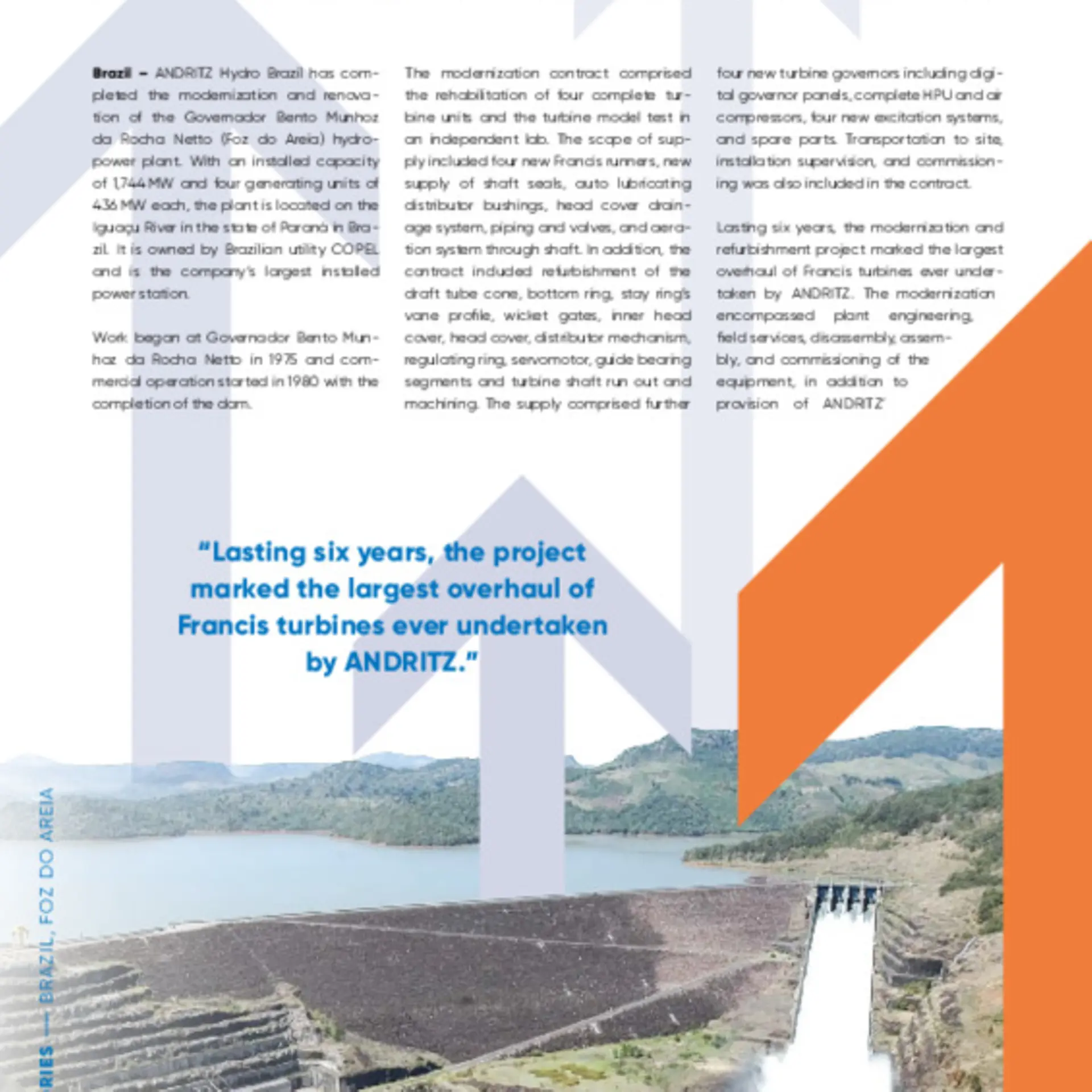 ANDRITZ Hydro Brazil has completed the modernization and renovation of the Governador Bento Munhoz da Rocha Netto (Foz do Areia) hydropower plant.