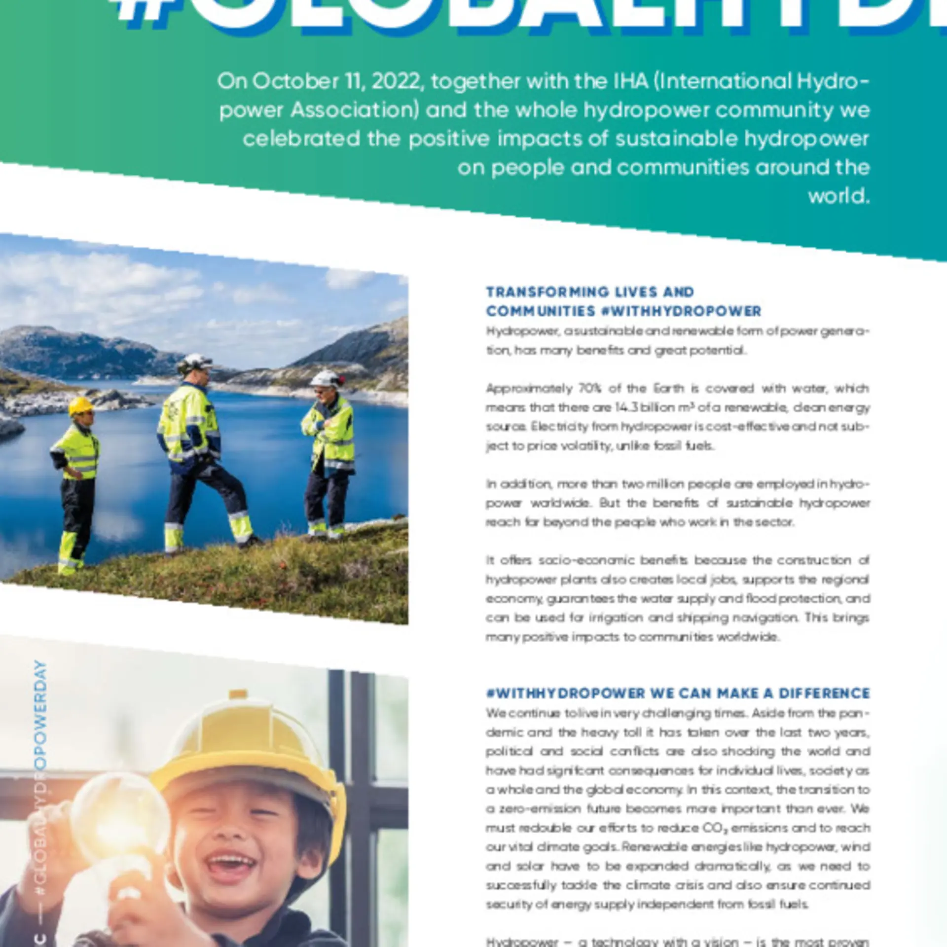 On October 11, 2022, together with the IHA (International Hydropower Association) and the whole hydropower community we celebrated the positive impacts of sustainable hydropower on people and communities around the world.