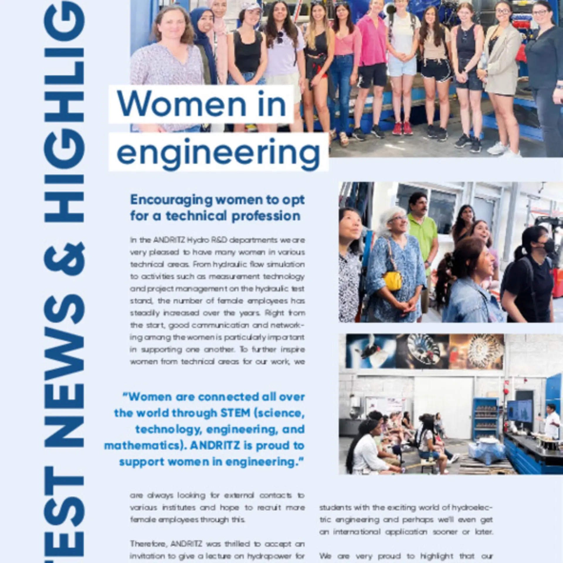 Therefore, ANDRITZ was thrilled to accept an invitation to give a lecture on hydropower for the University of Applied Sciences (FH Wels) at their workshop for “Women in Engineering”. We were pleased to welcome almost 30 female students from all over the world to the event in July 2022. All test rigs in Linz were inspected, and many hydraulic phenomena observed. We hope we were able to inspire the students with the exciting world of hydroelectric engineering and perhaps we’ll even get an international application sooner or later.