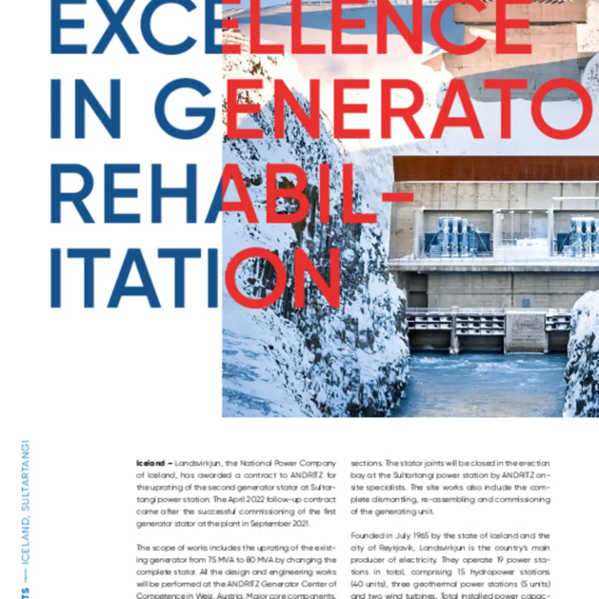 Landsvirkjun, the National Power Company of Iceland, has awarded a contract to ANDRITZ for the uprating of the second generator stator at Sultartangi power station.