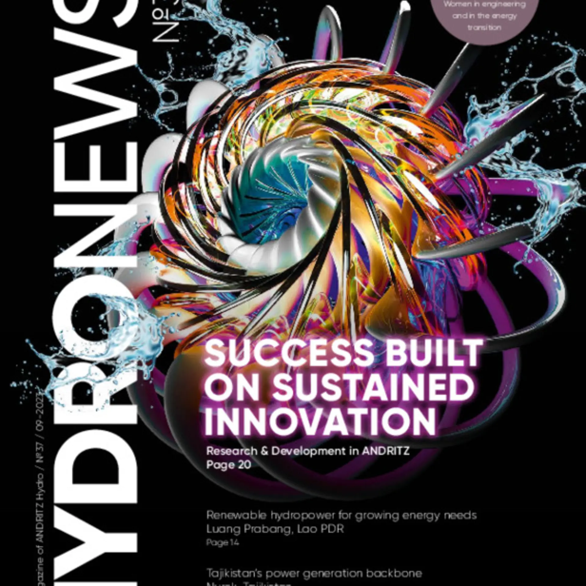 We are pleased to present the new issue of our customer magazine HydroNews No. 37. We cover topics ranging from research and development at ANDRITZ including the inauguration of the world's largest test rig for turbines and a cooperation with Formula 1 Sauber Technologies, to interviews on the topic of "Women in Technology" highlighting a diverse workforce. A showcase of projects from all over the world and presenting of innovative products such as synchronous condensers are demonstrating once again heads-on experience and the high commitment of our employees to make the world a better place with hydropower.