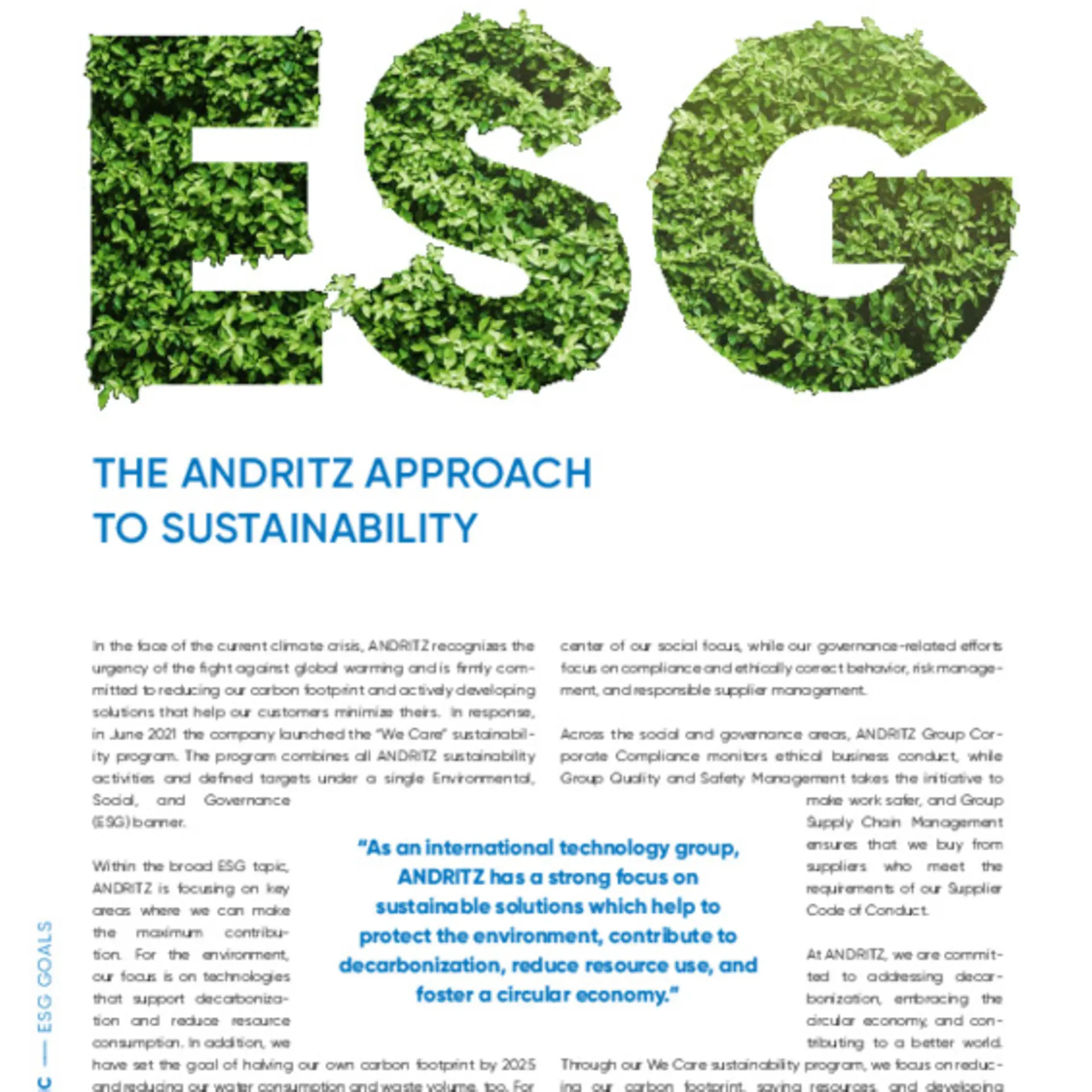 Sustainability is key to our collective future and the ANDRITZ environmental, social and governance program is just part of that tangible commitment. We Care.