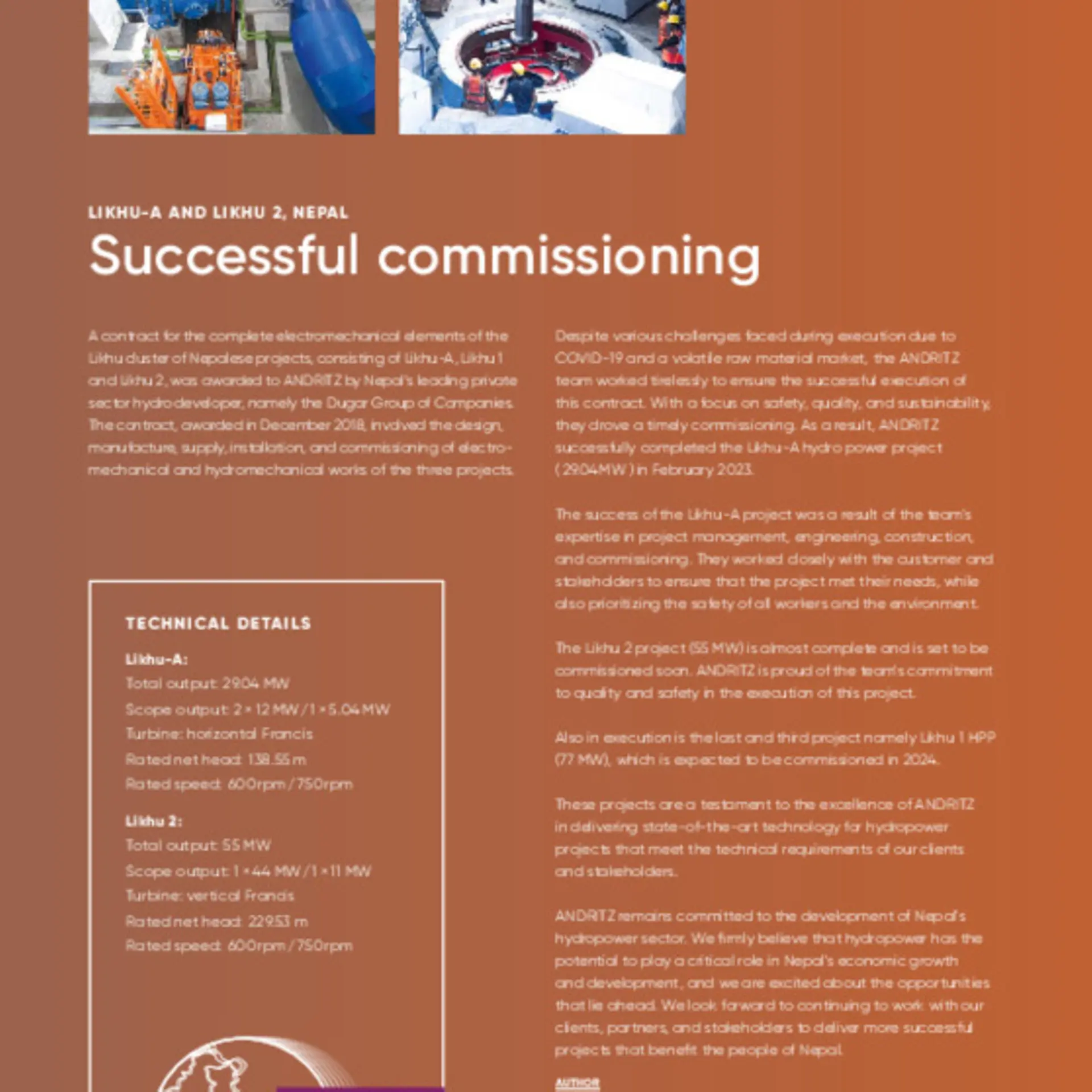ANDRITZ remains committed to the development of Nepal's hydropower sector. We firmly believe that hydropower has the potential to play a critical role in Nepal's economic growth and development, and we are excited about the opportunities that lie ahead. We look forward to continuing to work with our clients, partners, and stakeholders to deliver more successful projects that benefit the people of Nepal.