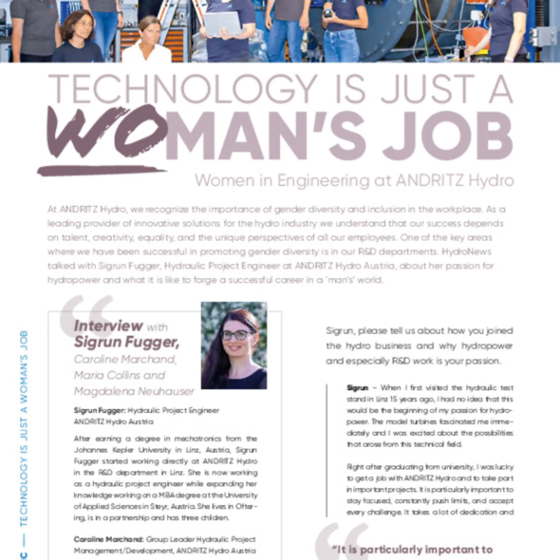 At ANDRITZ Hydro, we recognize the importance of gender diversity and inclusion in the workplace. As a leading provider of innovative solutions for the hydro industry we understand that our success depends on talent, creativity, equality, and the unique perspectives of all our employees. One of the key areas where we have been successful in promoting gender diversity is in our R&D departments. HydroNews talked with Sigrun Fugger, Hydraulic Project Engineer at ANDRITZ Hydro Austria, about her passion for hydropower and what it is like to forge a successful career in a ‘man’s’ world.