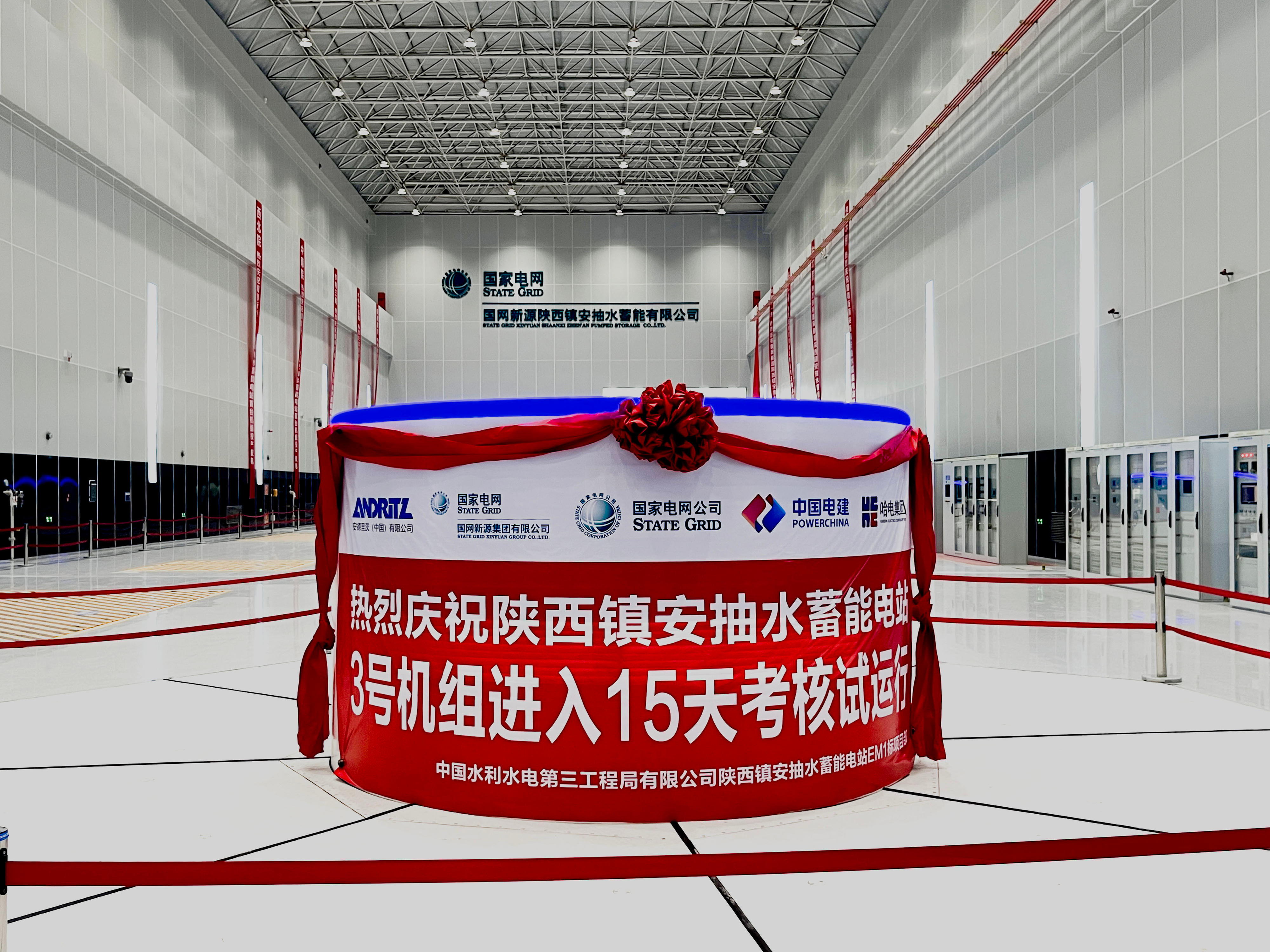 The Zhen An Pumped Storage Power Plant, the first of its kind in Shaanxi Province, has been successfully completed and put into operation with remarkable outcomes, marked by a series of critical milestones. The project's progress began with the early energization of main transformers in December 2023, which enabled Unit 1's wet commissioning. Building on this achievement, formal commissioning followed in March 2024, while installation of subsequent units continued smoothly. Notably, Unit 2's stator and rotor — measuring 8.6 m and 5.7 m in diameter respectively and weighing over 650tons combined — were successfully installed in September 2023, followed by Unit 3 in January 2024 and Unit 4's stator in April 2024.
