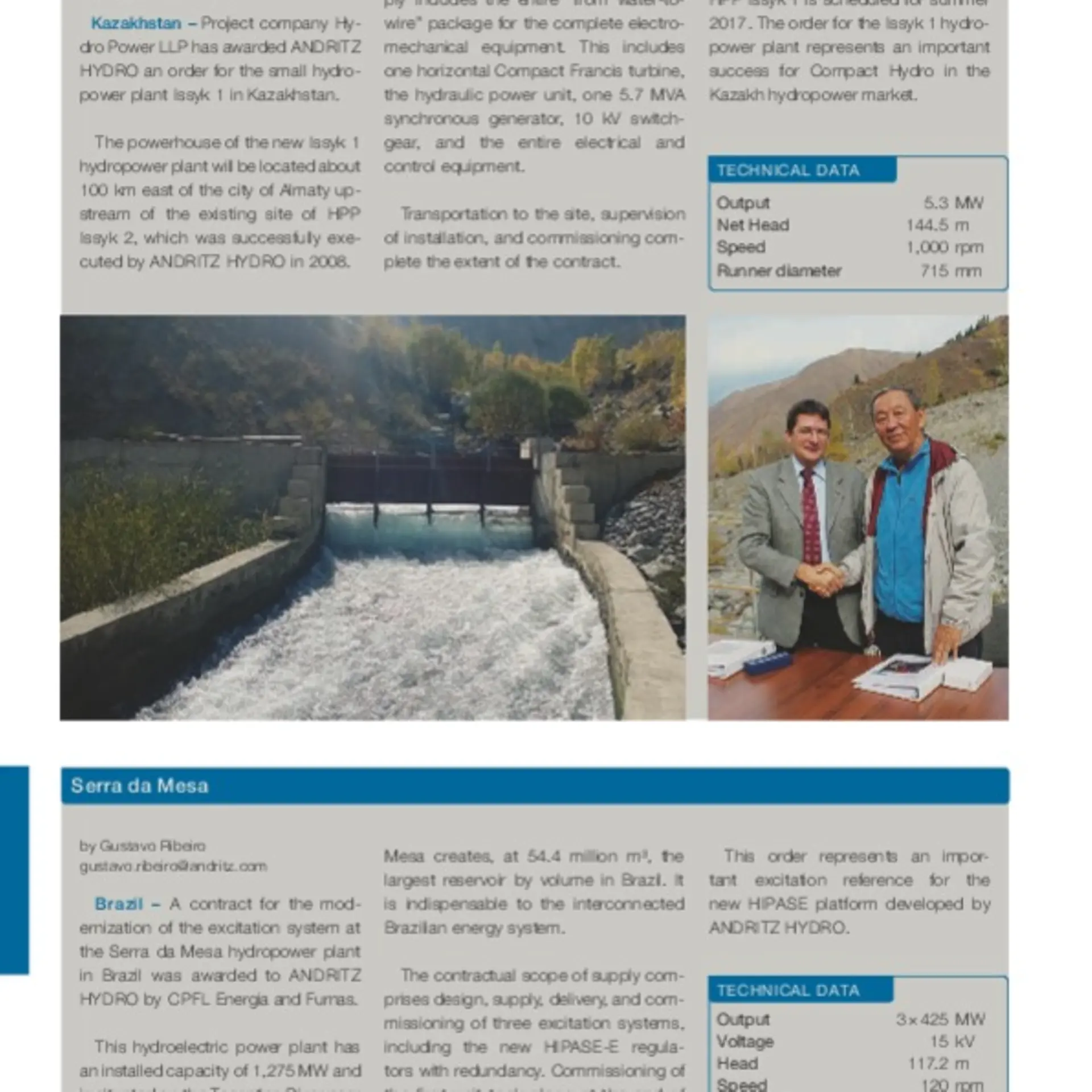 Project company Hydro Power LLP has awarded ANDRITZ HYDRO an order for the small hydropower plant Issyk 1 in Kazakhstan.