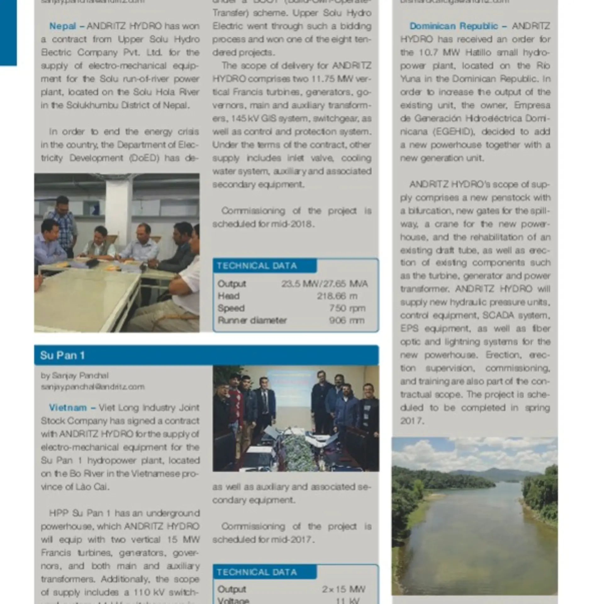 Viet Long Industry Joint Stock Company has signed a contract with ANDRITZ HYDRO for the supply of electro-mechanical equipment for the Su Pan 1 hydropower plant, located on the Bo River in the Vietnamese province of Lào Cai.