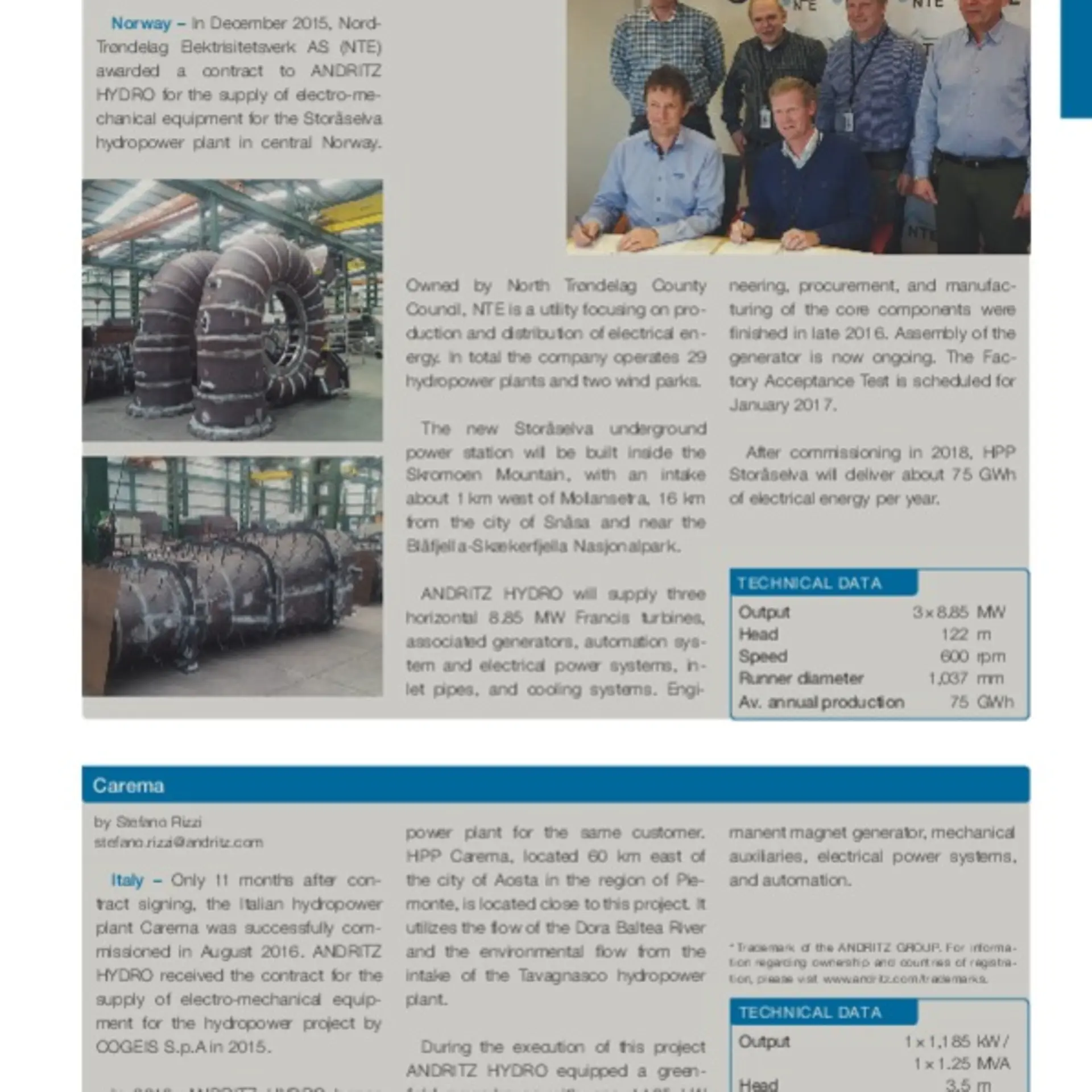 Only 11 months after contract signing, the Italian hydropower plant Carema was successfully commissioned in August 2016.