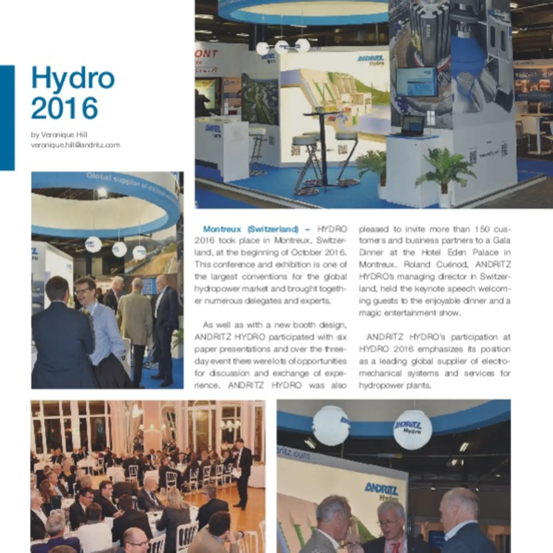Montreux (Switzerland) – HYDRO 2016 took place in Montreux, Switzerland, at the beginning of October 2016. This conference and exhibition is one of the largest conventions for the global hydropower market and brought together numerous delegates and experts.