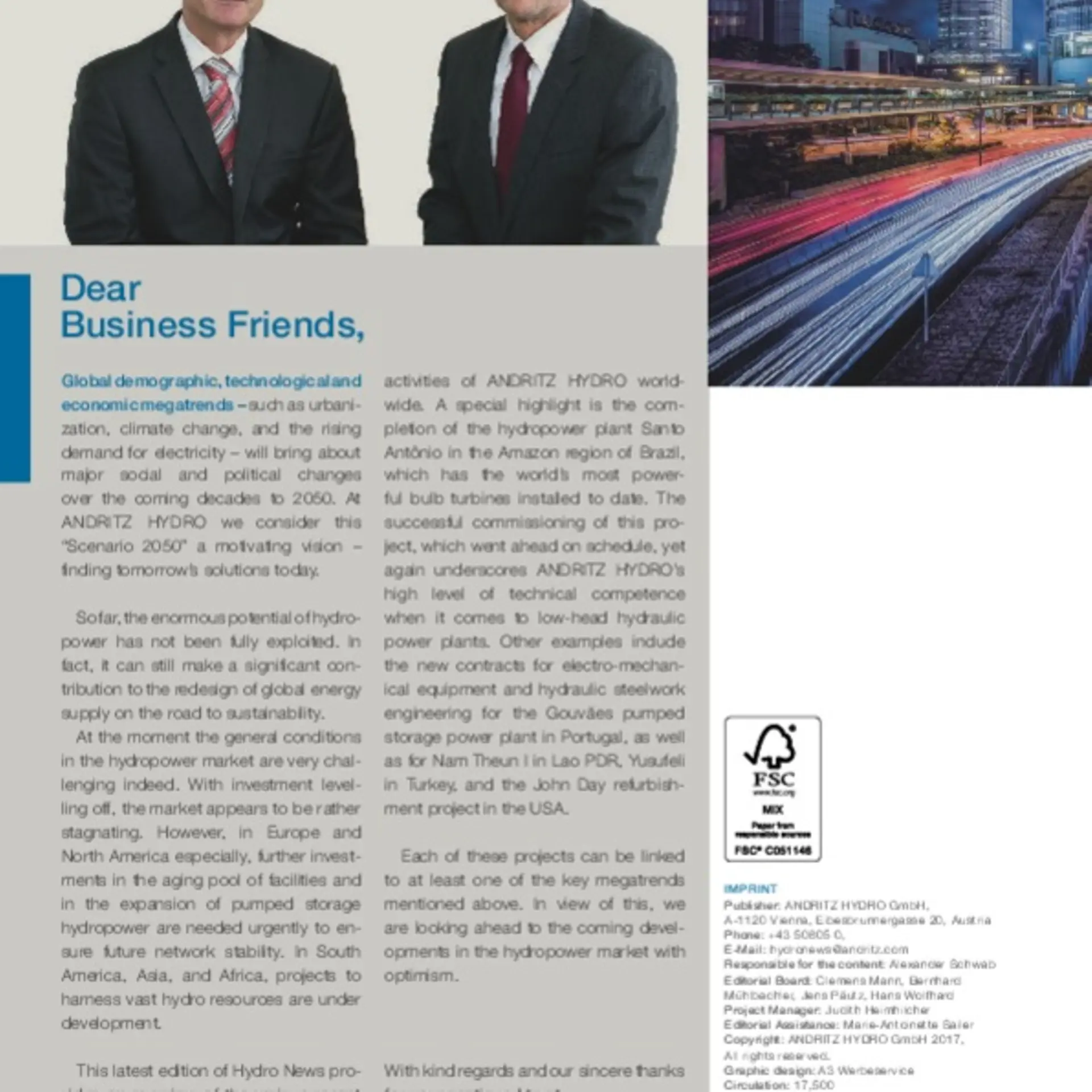 Each of these projects can be linked to at least one of the key megatrends mentioned above. In view of this, we are looking ahead to the coming developments in the hydropower market with optimism.