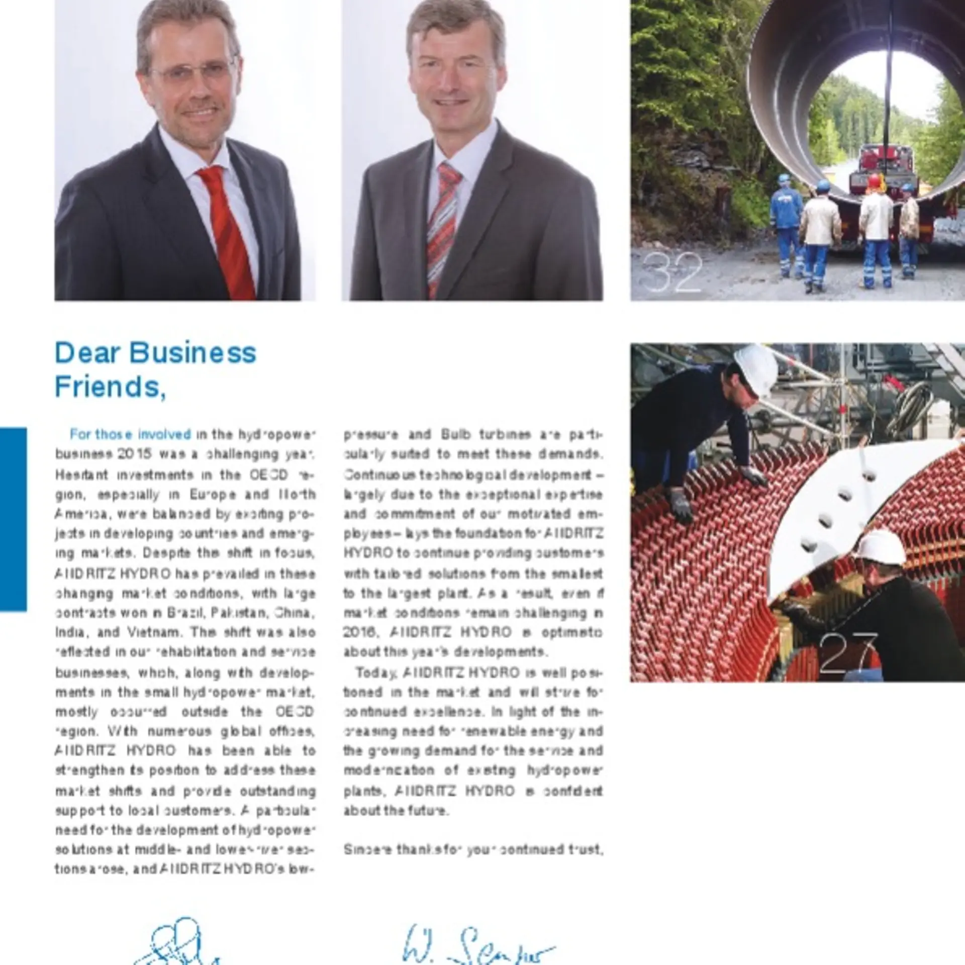 And to my business partners, I would like to thank you for your outstanding cooperation and ask that you continue to place your trust in ANDRITZ HYDRO, its management and employees.