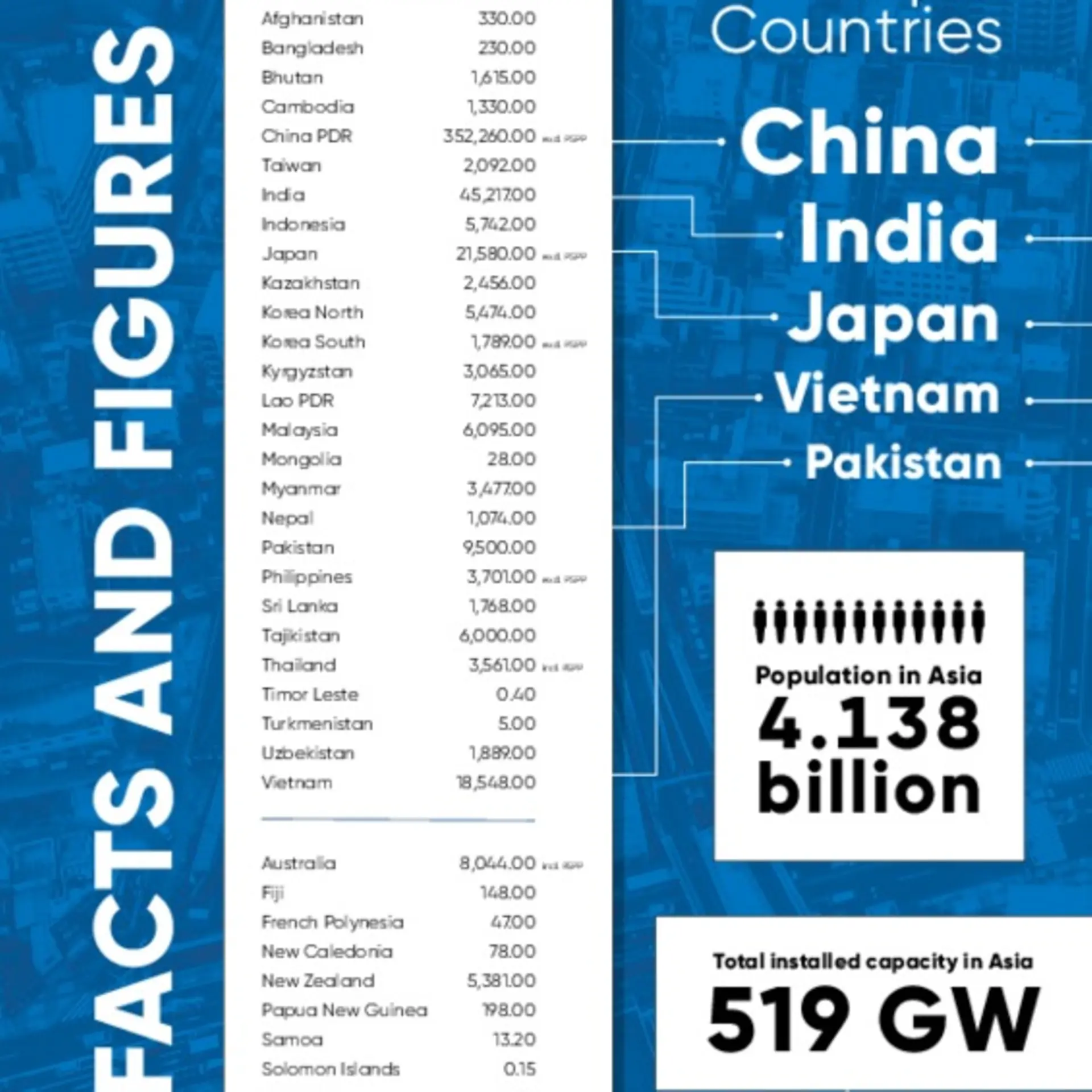 | Pakistan: 9,500.00 MW | Philippines: 3,701.00 MW excl. pspp | |||
