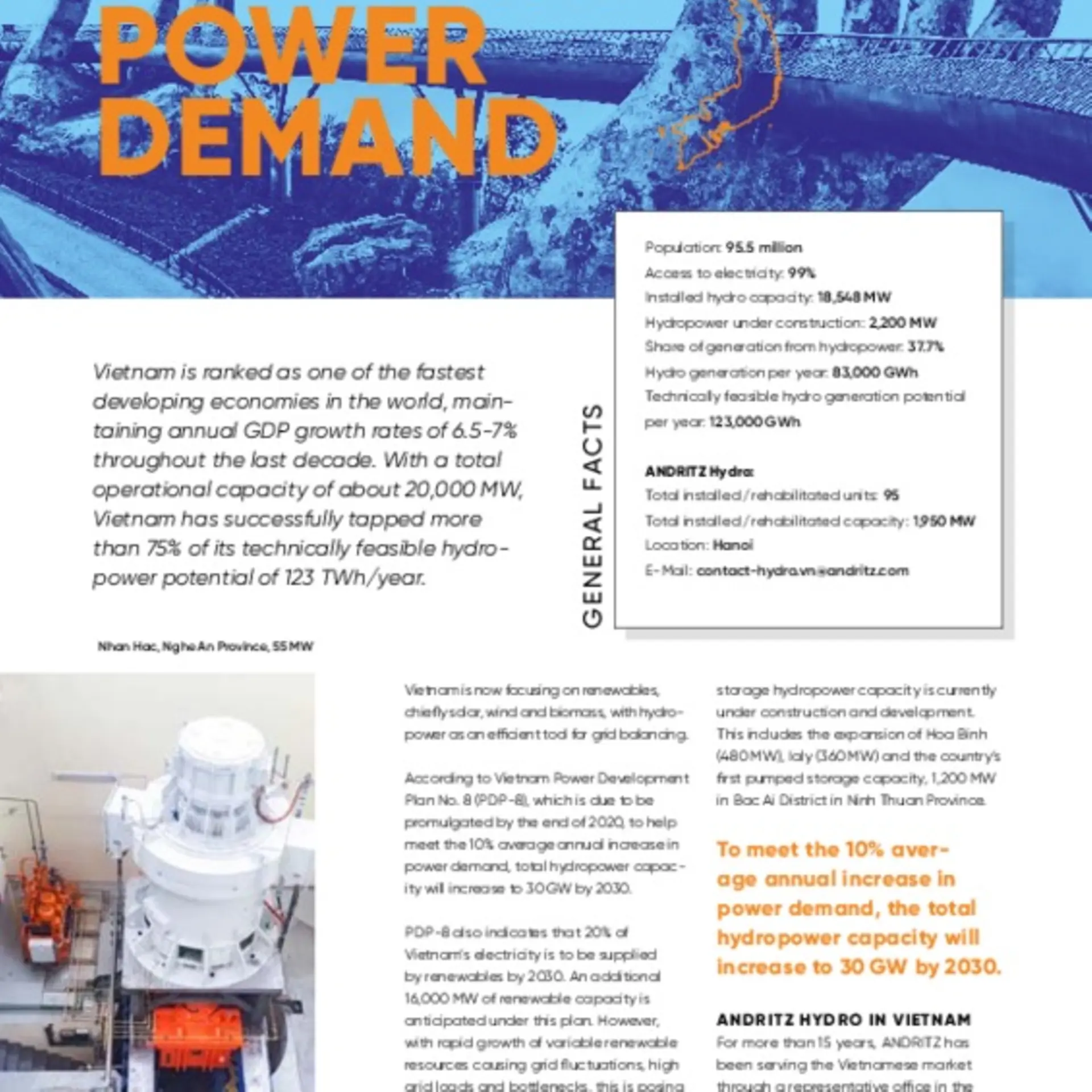 Vietnam is ranked as one of the fastest developing economies in the world, maintaining annual GDP growth rates of 6.5-7% throughout the last decade. With a total operational capacity of about 20,000 MW, Vietnam has successfully tapped more than 75% of its technically feasible hydropower potential of 123 TWh/year.