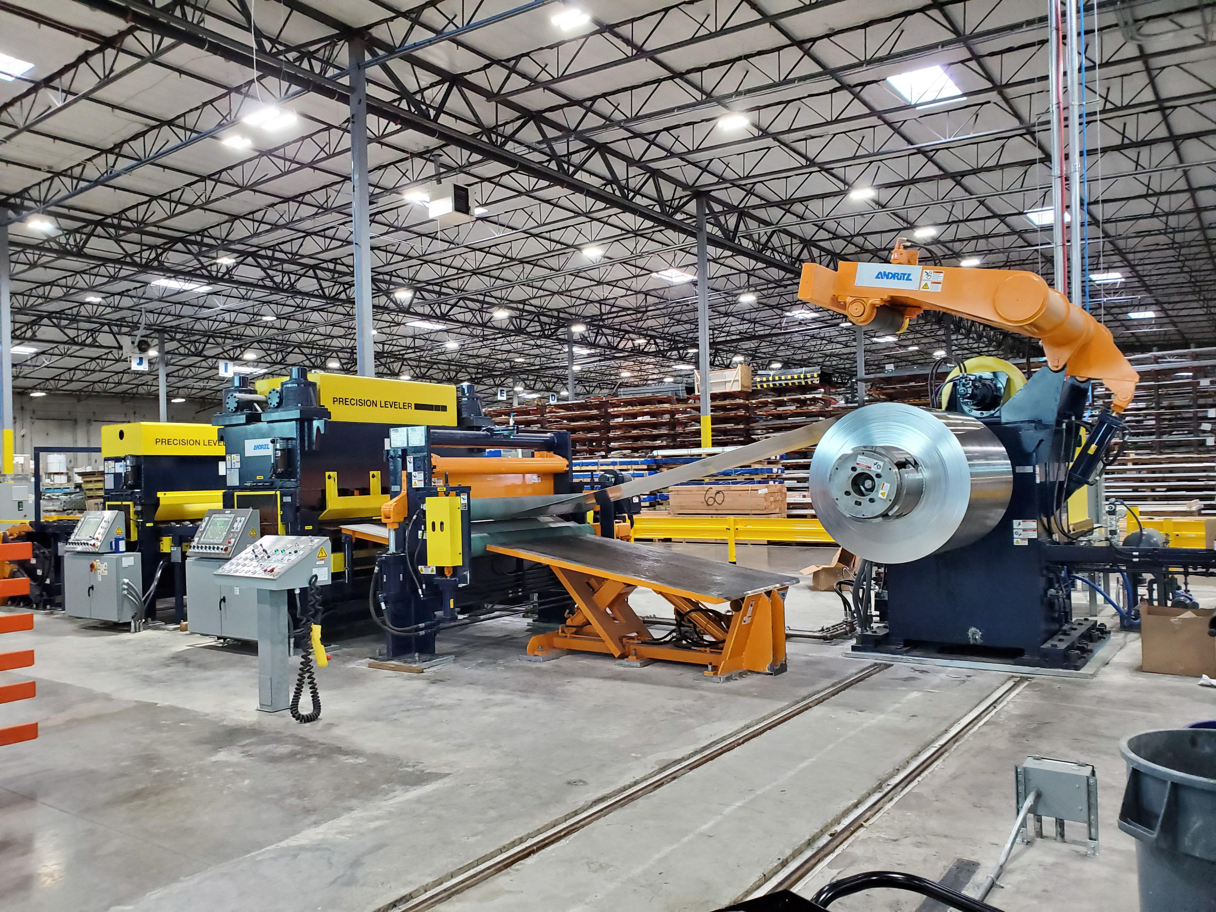 Die Linie verarbeitet Edelstahl und Aluminium mit einer Dicke von 0,25“ und einer Breite von 72“ und weist eine Bundkapazität von 20.000 Pfund auf.
