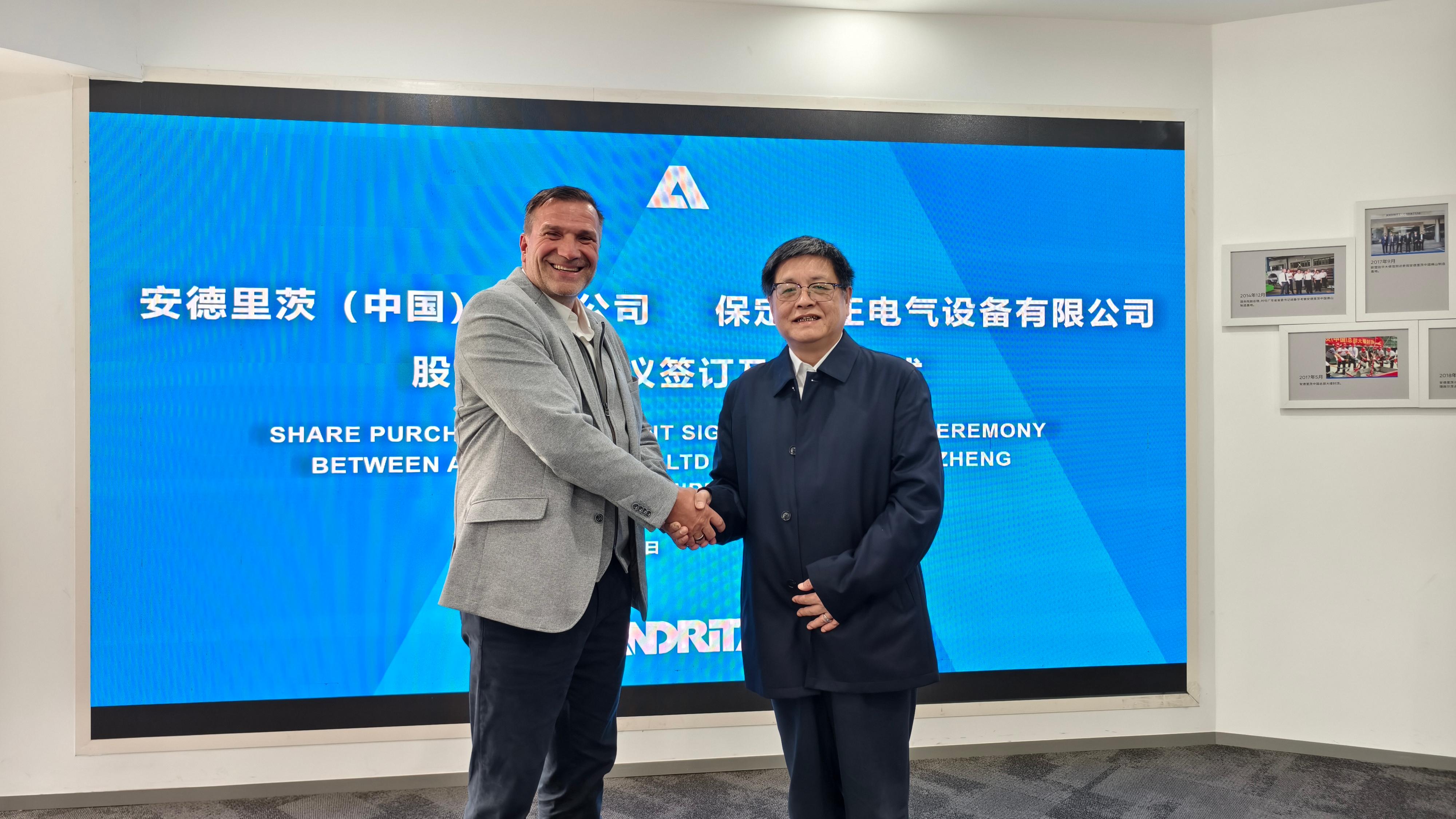 Guido Burgel, Senior Vice President, ANDRITZ Metals Processing, und Yonglong Peng, Eigentümer von Sanzheng