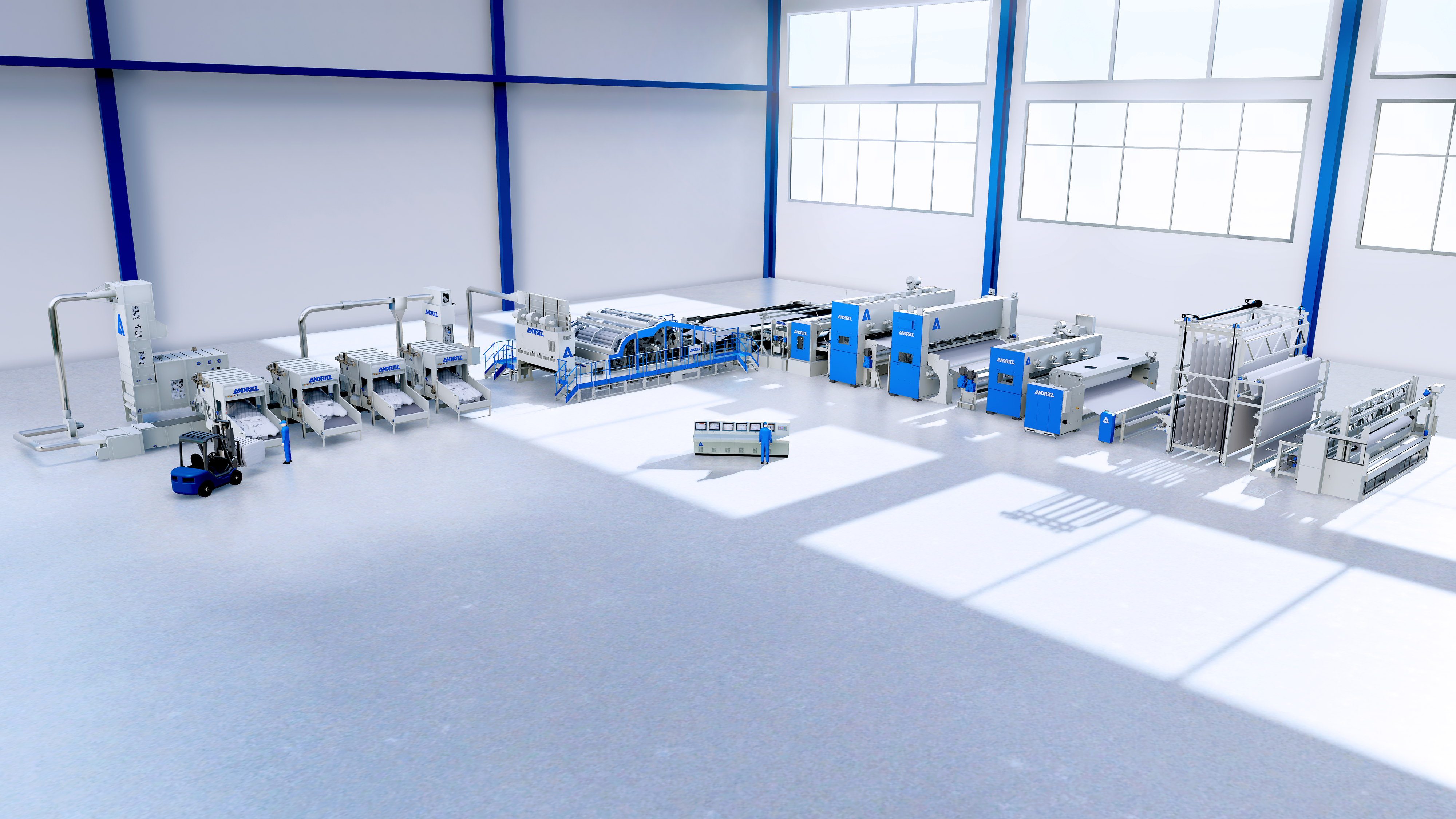 Mit dieser neuen Anlage wird Sioen schwere Vliesstoffe in einem Schritt herstellen können.